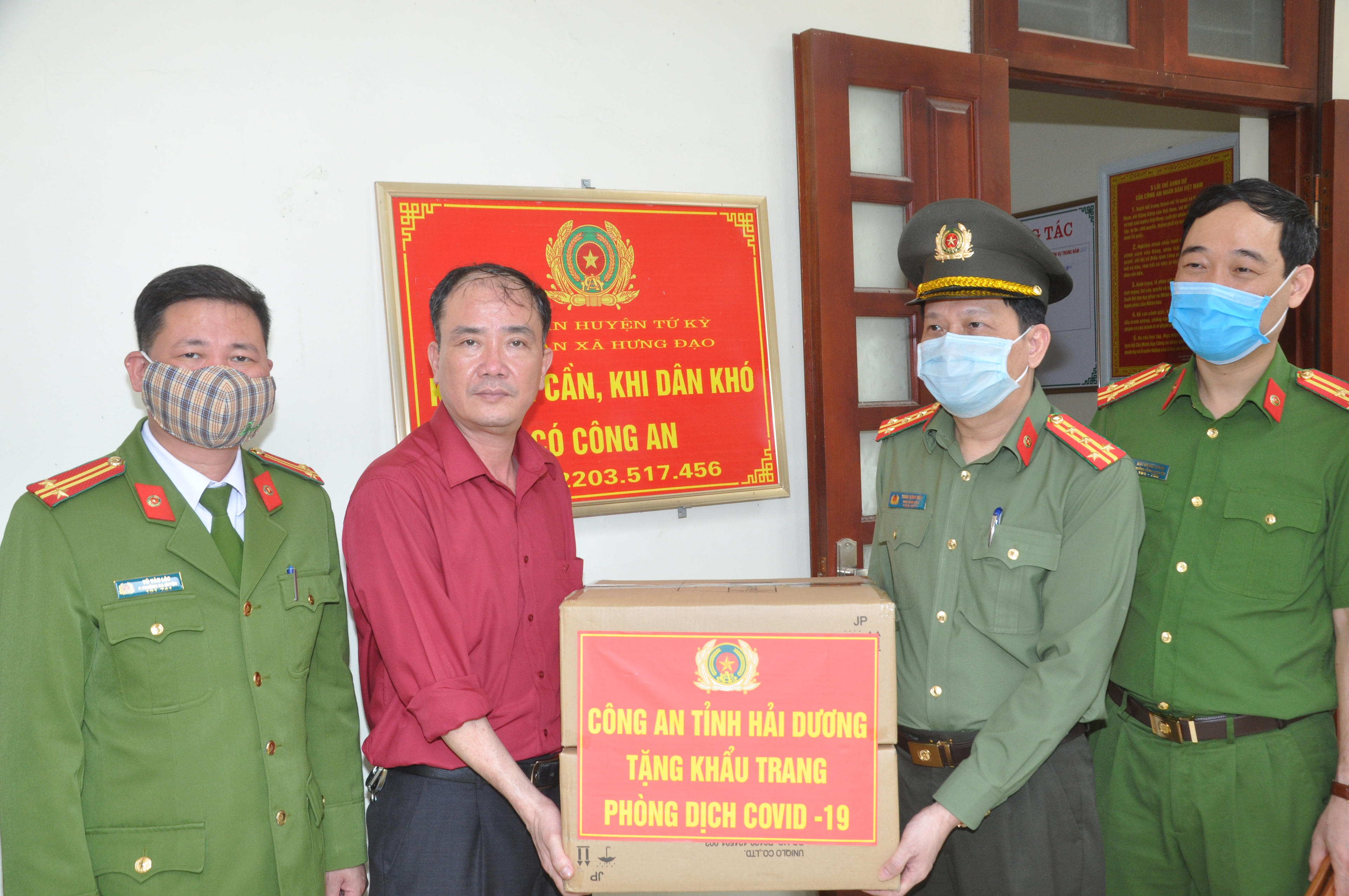 Được biết, để phục vụ công tác phòng chống dịch bệnh Covid 19 đạt hiệu quả, tránh sự lây lan trong cộng đồng, lực lượng Công an tỉnh Hải Dương cũng đã tổ chức nhiều buổi cấp phát khẩu trang và dung dịch sát khuẩn, các thiết bị đồ dùng bảo hộ miễn phí cho các Công an và chính quyền các địa phương trong toàn tỉnh.