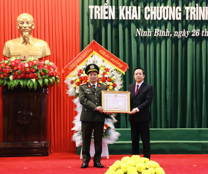 Nhân dịp này, Thứ trưởng Trần Quốc Tỏ đã trao Bằng khen của Bộ Công an tặng Công an tỉnh Ninh Bình và trao Cờ thi đua của Bộ Công an tặng 3 đơn vị của Công an tỉnh Ninh Bình có thành tích xuất sắc; Chủ tịch UBND tỉnh Ninh Bình Phạm Quang Ngọc trao Bằng khen của UBND tỉnh Ninh Bình tặng Công an tỉnh và trao Cờ thi đua của UBND tỉnh tặng 4 đơn vị có thành tích xuất sắc; Giám đốc Công an tỉnh Ninh Bình Đại tá Đặng Trọng Cường trao Danh hiệu đơn vị Quyết thắng cho 13 đơn vị.