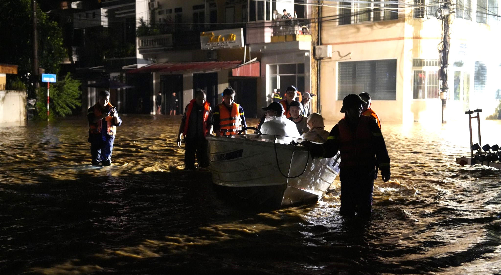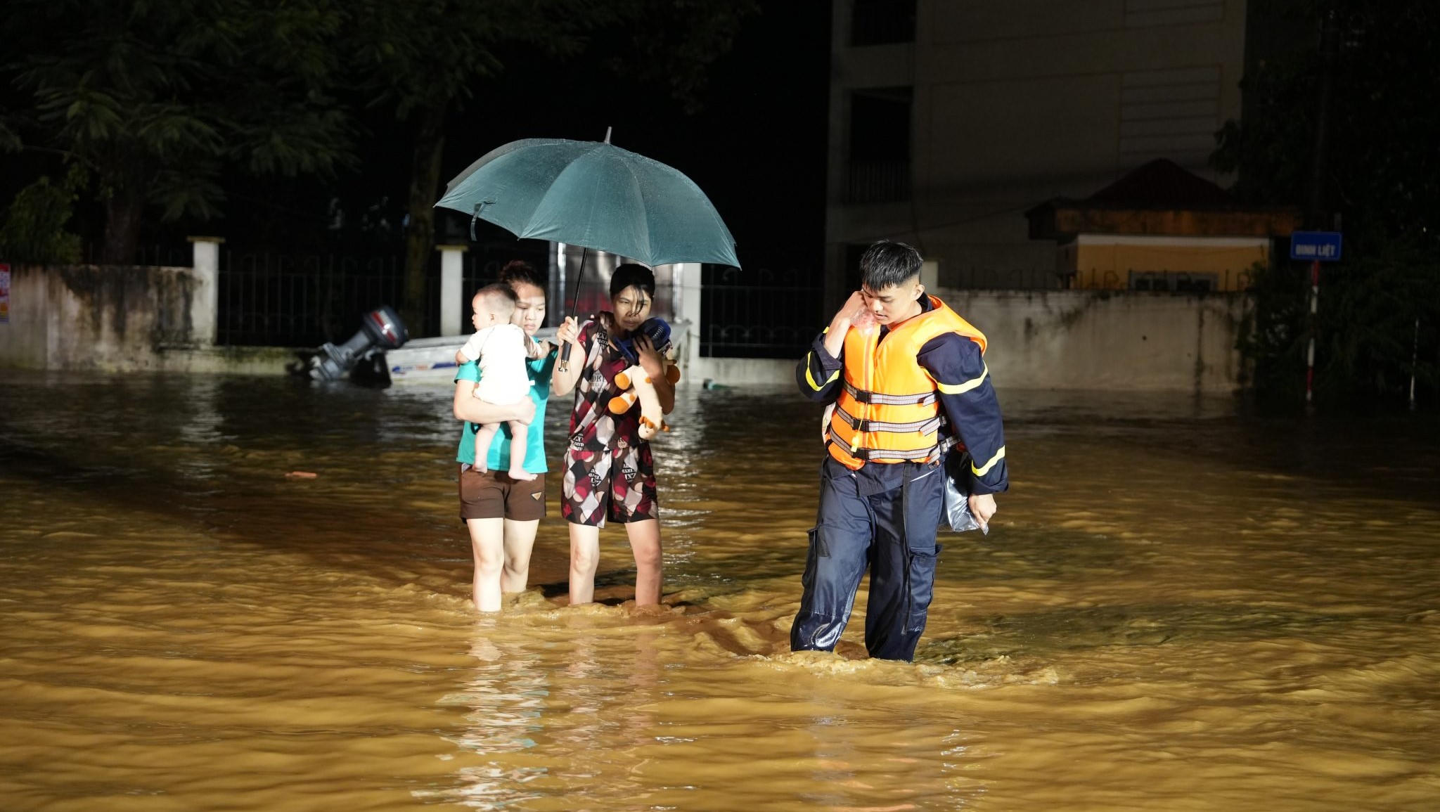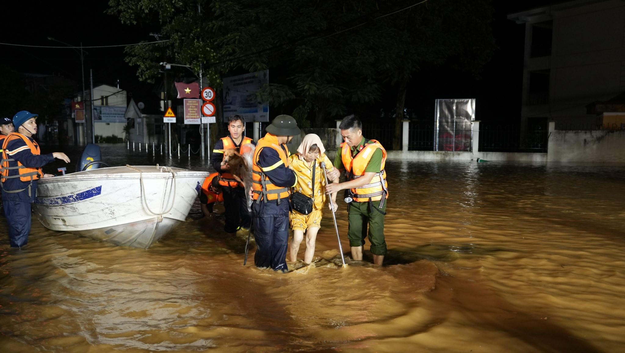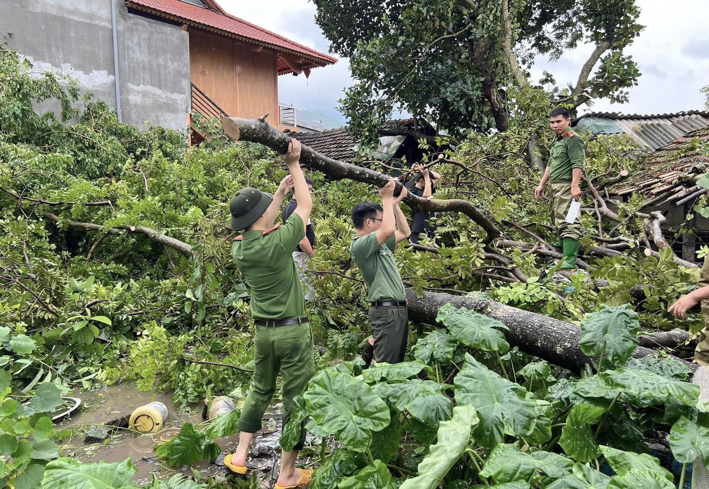 Do ảnh hưởng của mưa bão, nước sông dâng cao gây ngập cục bộ nhiều tuyến đường của thành phố Yên Bái (tỉnh Yên Bái), hơn 500 cán bộ, chiến sỹ lực lượng vũ trang gồm công an, quân đội, dân quân tự vệ thức trắng đêm giúp người dân vượt lũ.