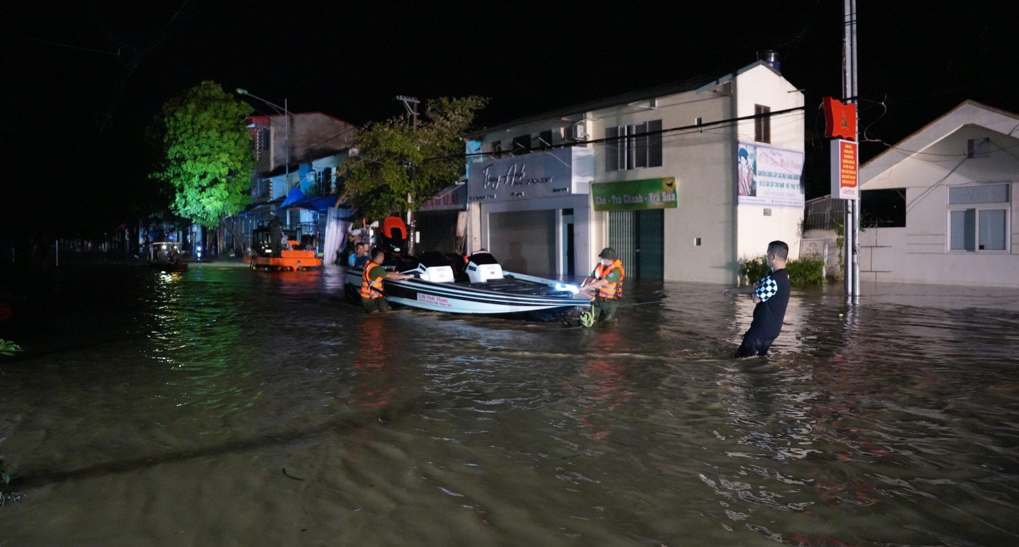 Phần lớn các hộ gia đình trên tuyến đường Thanh Niên và các đường nhánh nước đã ngập vào nhà từ 0,5m đến trên 1m. Toàn bộ tuyến đường Thanh Niên được cắt điện để đảm bảo an toàn.