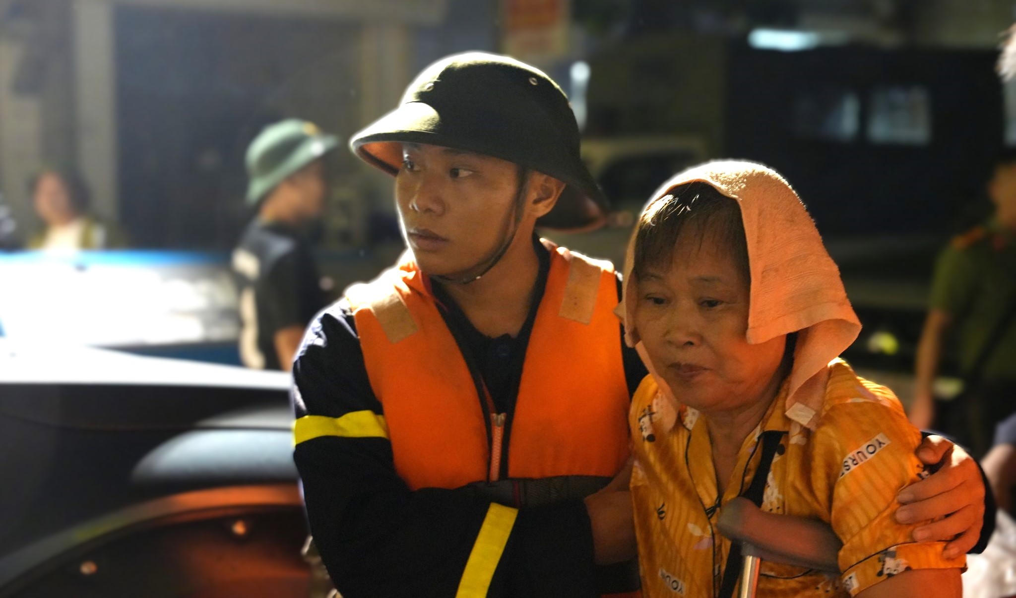 Trong đêm 8 và sáng 9/9, lực lượng lượng chức năng Yên Bái nỗ lực di dời hàng trăm người dân đến nơi tránh lũ an toàn. Ảnh: Huy Toàn. |