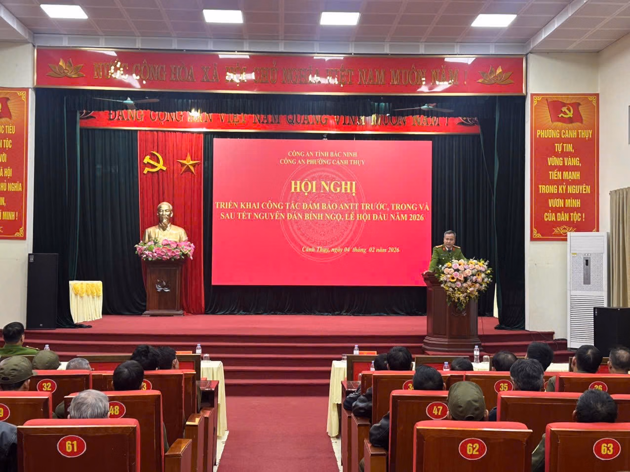 Ngày 04/02/2026, đơn vị tổ chức Hội nghị triển khai công tác bảo đảm ANTT trước, trong và sau Tết Nguyên đán Bính Ngọ 2026 và các lễ hội đầu năm. Tại hội nghị, Trưởng Công an phường nhấn mạnh yêu cầu nắm chắc tình hình địa bàn, đối tượng; tăng cường quản lý cư trú; duy trì tuần tra, kiểm soát nhằm phòng ngừa các loại tội phạm như trộm cắp, cướp giật, gây rối trật tự công cộng, sử dụng pháo nổ trái phép. Đồng thời, xây dựng các tình huống giả định và phương án xử lý cụ thể để nâng cao khả năng ứng phó.