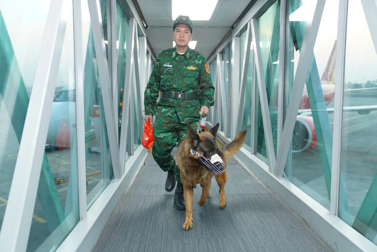 Các chiến sĩ công an và quân đội Việt Nam tại sân bay Yangon (Ảnh: Nguyễn Quang) |