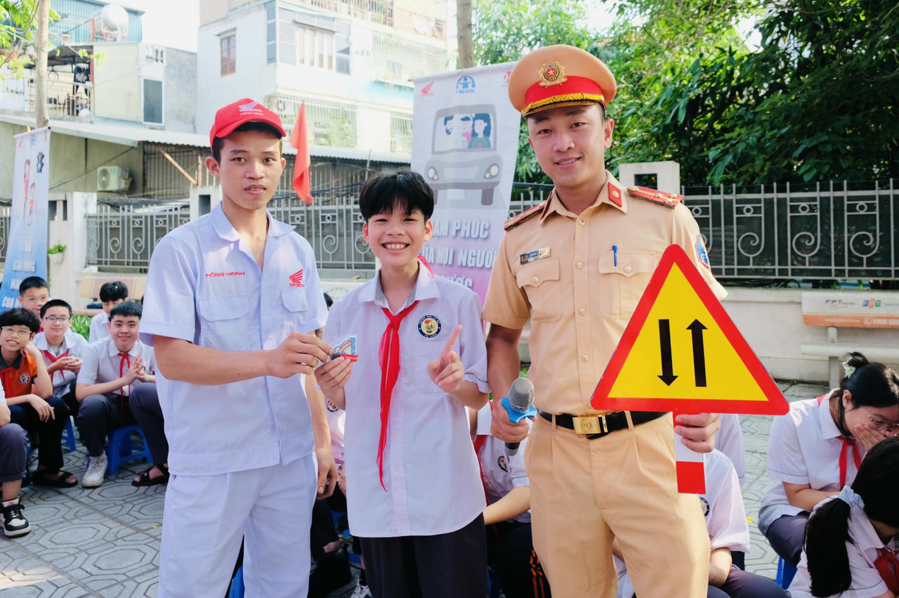 Bên cạnh đó, các em học sinh được hướng dẫn kỹ năng lái xe an toàn khi tham gia giao thông; hướng dẫn cách chọn và đội mũ bảo hiểm; cách ngồi xe an toàn; trang bị kỹ năng phòng tránh, xử lý tình huống khi tham gia giao thông; kỹ năng lái xe phòng tránh, xử lý va chạm thường gặp; kỹ năng thoát hiểm khi gặp tai nạn giao thông đường bộ và sơ cấp cứu khi xảy ra tai nạn giao thông…