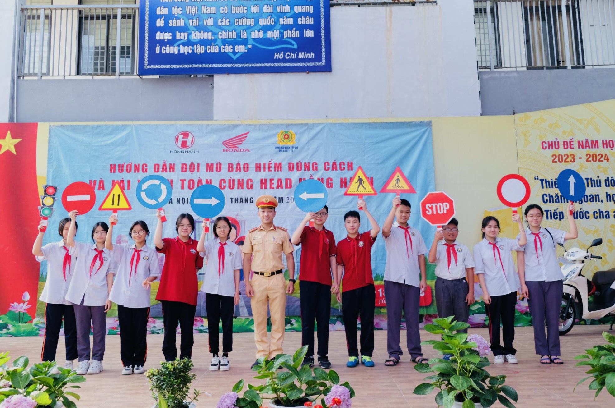 Trước đó, Đội CSGT-TT quận Tây Hồ cũng đã phối hợp cùng Đoàn Thanh Niên Hội LHTN Việt Nam Phường Yên Phụ cùng doanh nghiệp, tổ chức chương trình tuyên truyền Luật giao thông đường bộ và xây dựng văn hoá tham gia giao thông cho hơn 600 cán bộ, giáo viên và học sinh trường THCS An Dương - Tây Hồ.