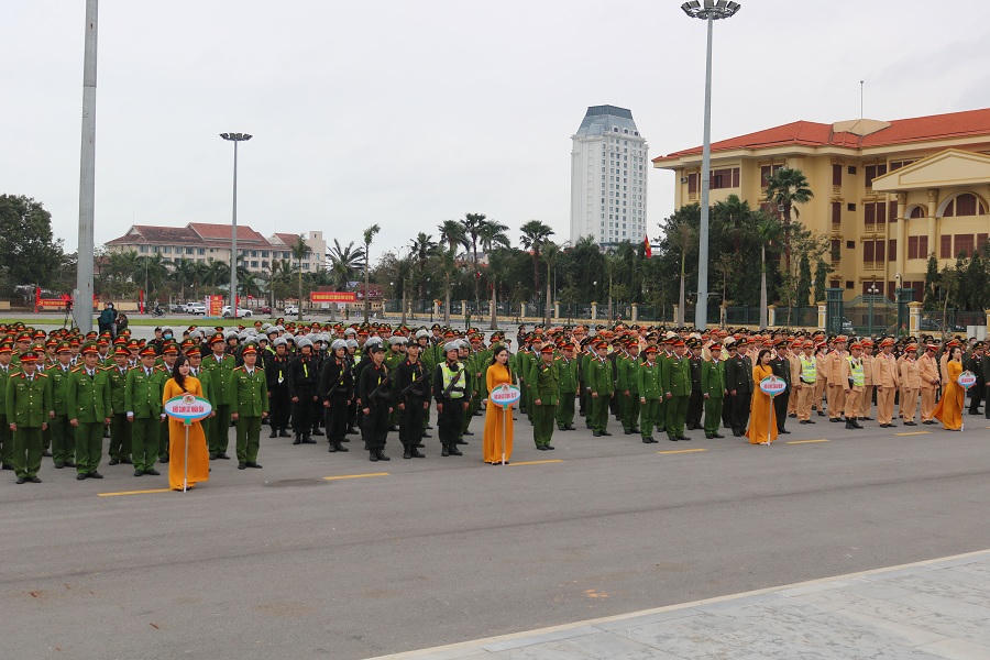 Ngay sau buổi Lễ, các lực lượng Công an tỉnh Quảng Bình đã đồng loạt diễu hành biểu dương lực lượng tấn công, trấn áp tội phạm trên phạm vi toàn tỉnh.