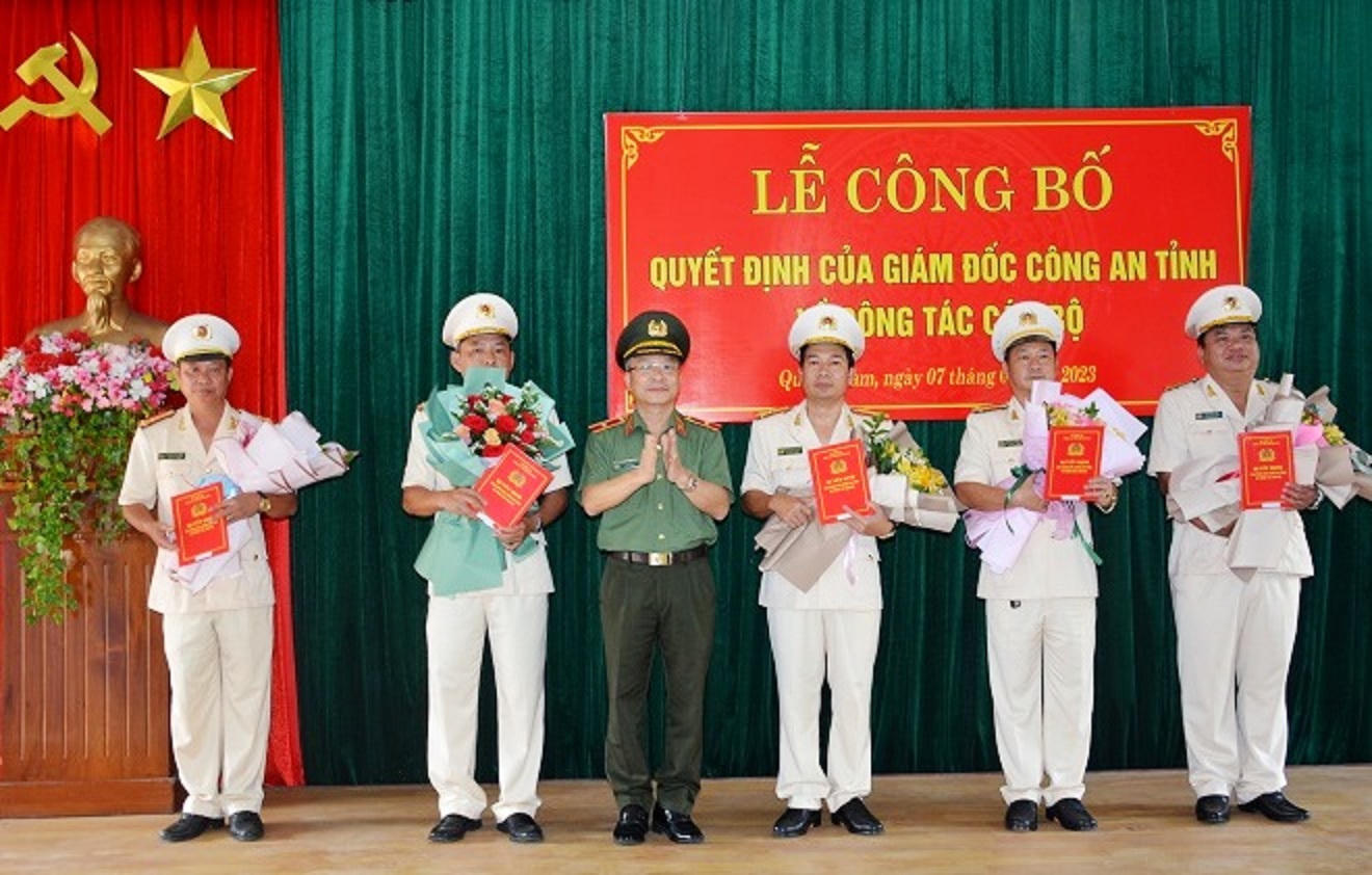 Theo đó, Thượng tá Huỳnh Văn Công, Phó Trưởng Công an huyện Núi Thành được điều động đến nhận công tác và giữ chức vụ Phó Trưởng phòng Cảnh sát kinh tế Công an tỉnh.