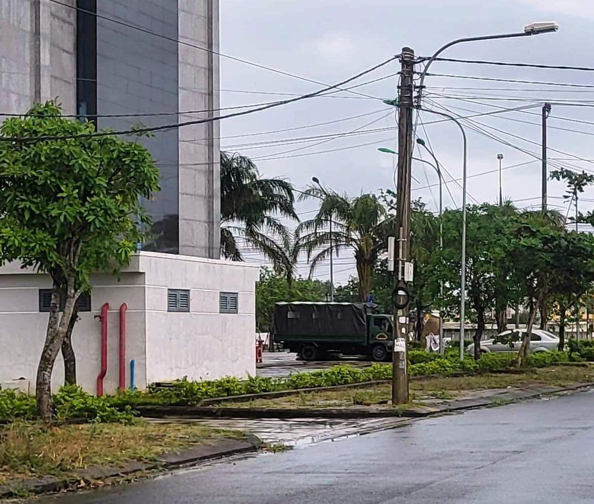 Xe cảnh sát có mặt tại trụ sở công ty tài chính Mirae Asset tại Quảng Nam. |