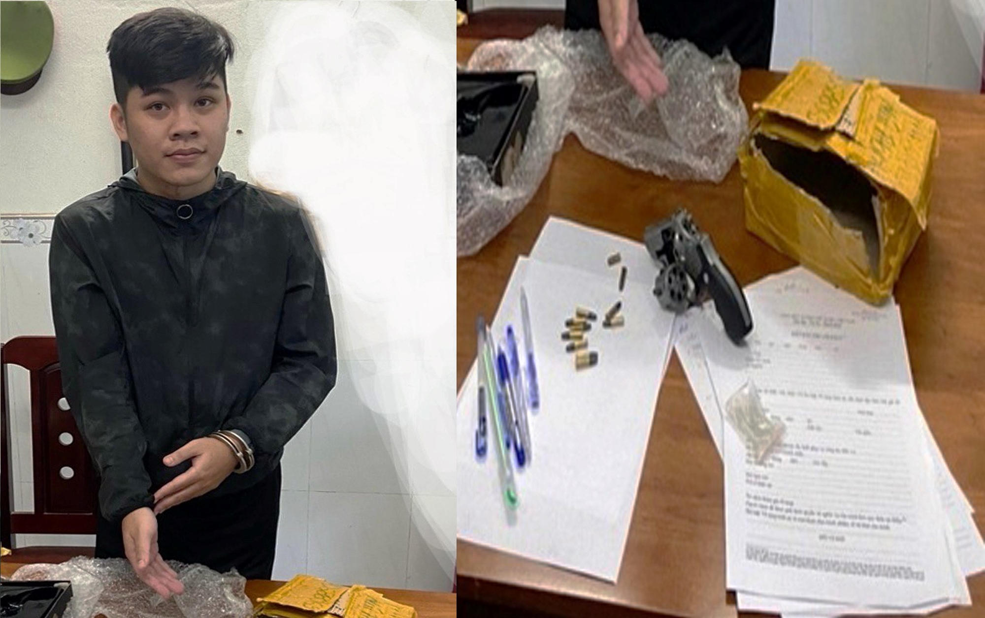 Trước đó, Phòng Cảnh sát hình sự bắt quả tang Phi nhận 1 gói hàng tại quốc lộ 1 thuộc xã Tam Hiệp, bên trong có 1 khẩu súng và 10 viên đạn.
