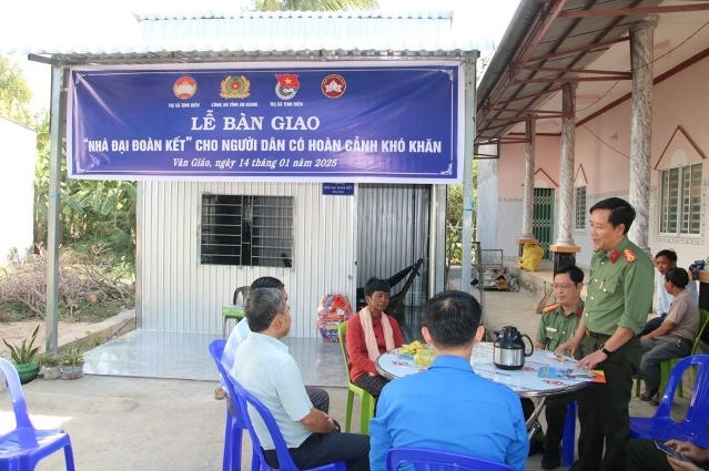 (PLVN) - Công an tỉnh An Giang vừa phối hợp UBMTTQVN thị xã Tịnh Biên và các đơn vị liên quan tổ chức Lễ Bàn giao 5 căn “Nhà đại đoàn kết” cho các hộ dân có hoàn cảnh khó khăn trên địa bàn xã Văn Giáo (thị xã Tịnh Biên).