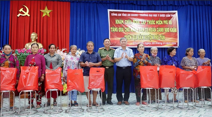 (PLVN) - Ngày 29/9/2024, Công an tỉnh An Giang phối hợp Trường Đại học Y Dược Cần Thơ tổ chức khám bệnh, cấp thuốc miễn phí và tặng quà cho 600 người dân có hoàn cảnh khó khăn trên địa bàn huyện Phú Tân, tỉnh An Giang.