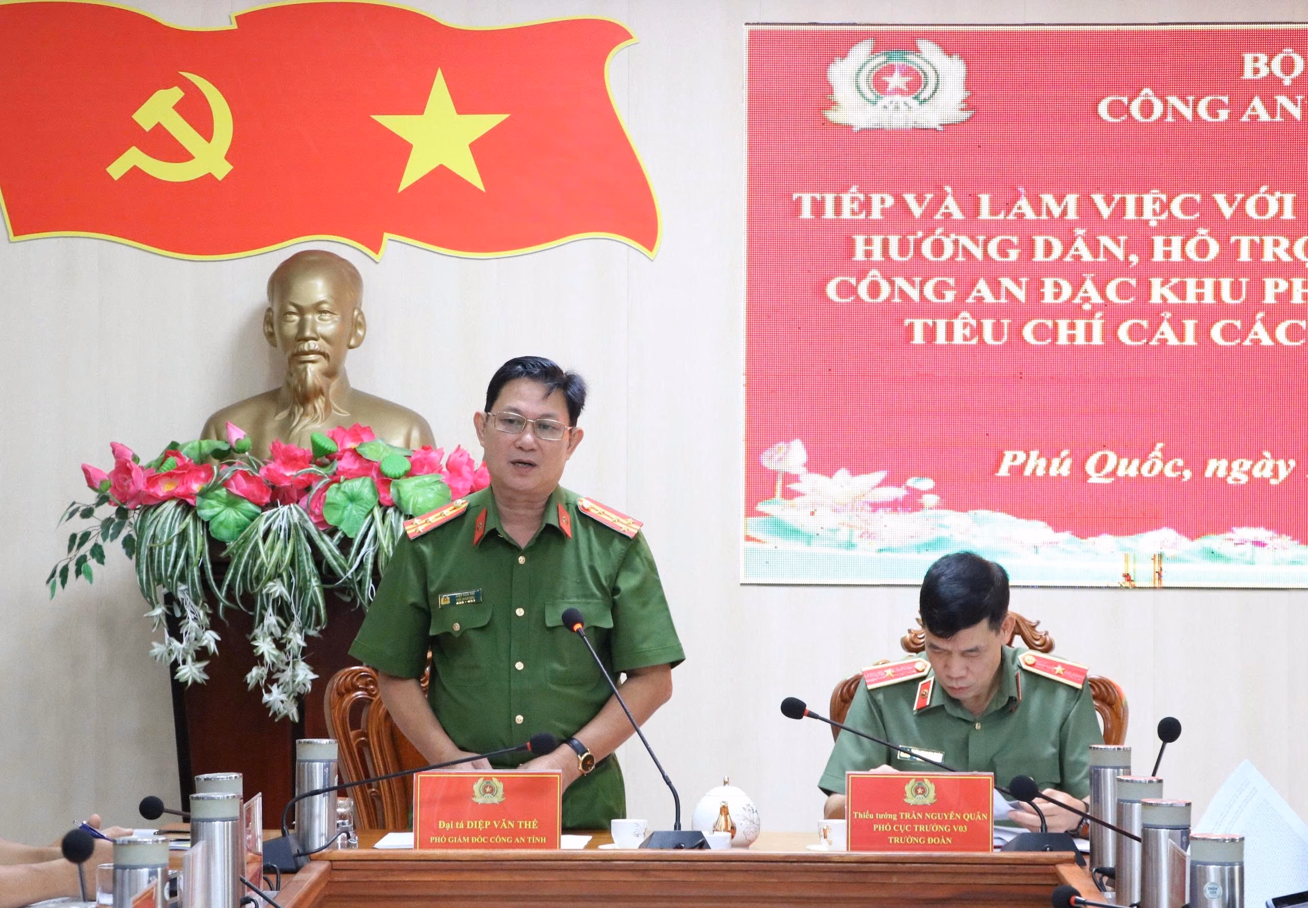 Đoàn khảo sát do Thiếu tướng Trần Nguyên Quân, Phó Cục trưởng Cục Pháp chế và cải cách hành chính, tư pháp - Bộ Công an làm Trưởng đoàn. Về phía Công an tỉnh An Giang có Đại tá Diệp Văn Thế, Phó Giám đốc Công an tỉnh chủ trì buổi làm việc; cùng tham dự có đại diện lãnh đạo các phòng nghiệp vụ Công an tỉnh, Chỉ huy Công an đặc khu Phú Quốc và Giám đốc Trung tâm Phục vụ hành chính công đặc khu.