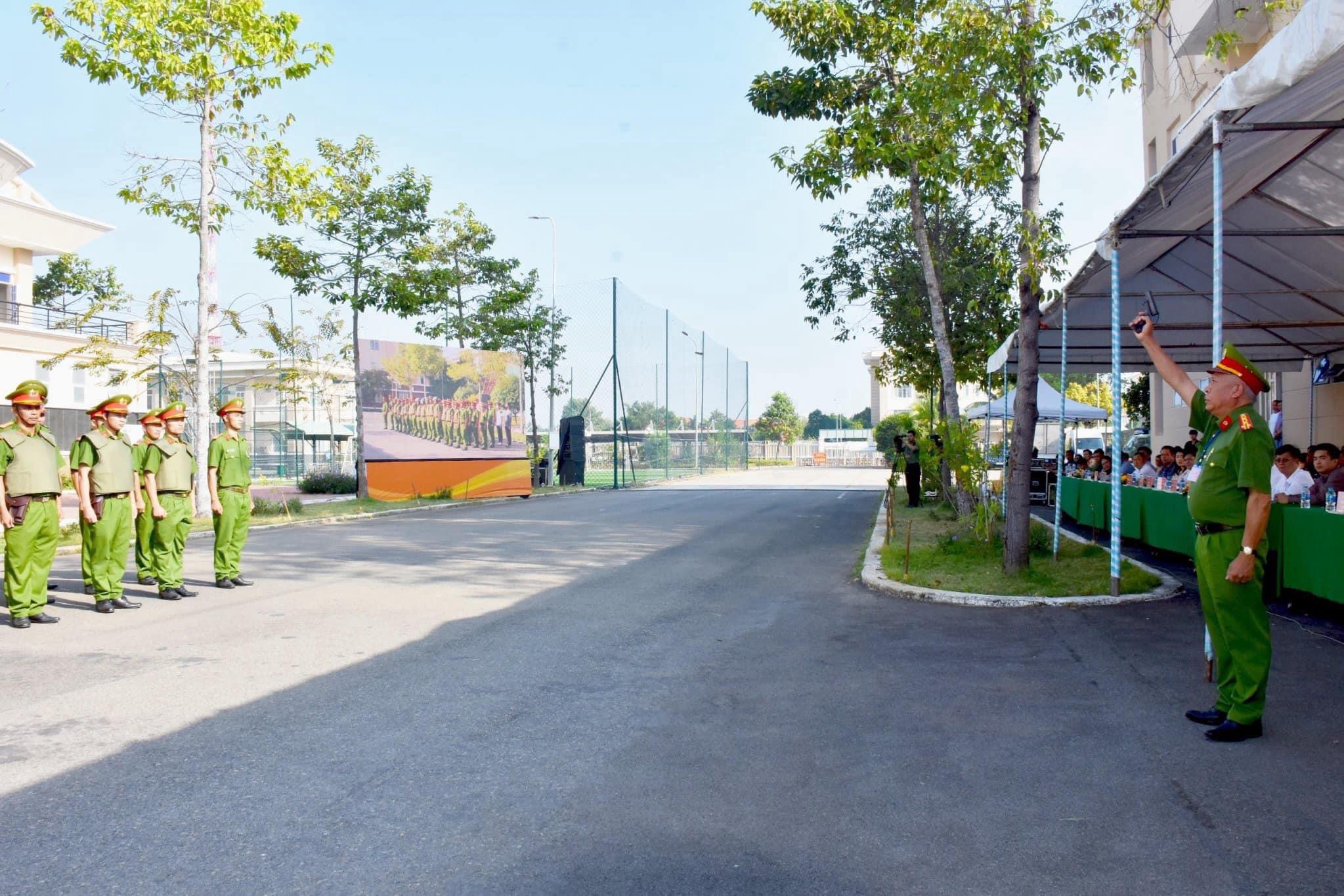 Đại tá Nguyễn Văn Thời, Phó Giám đốc Công an tỉnh Bà Rịa - Vũng Tàu nổ súng phát lệnh diễn tập. |