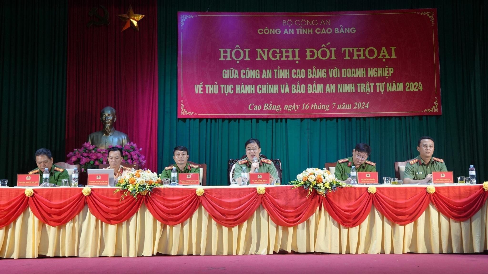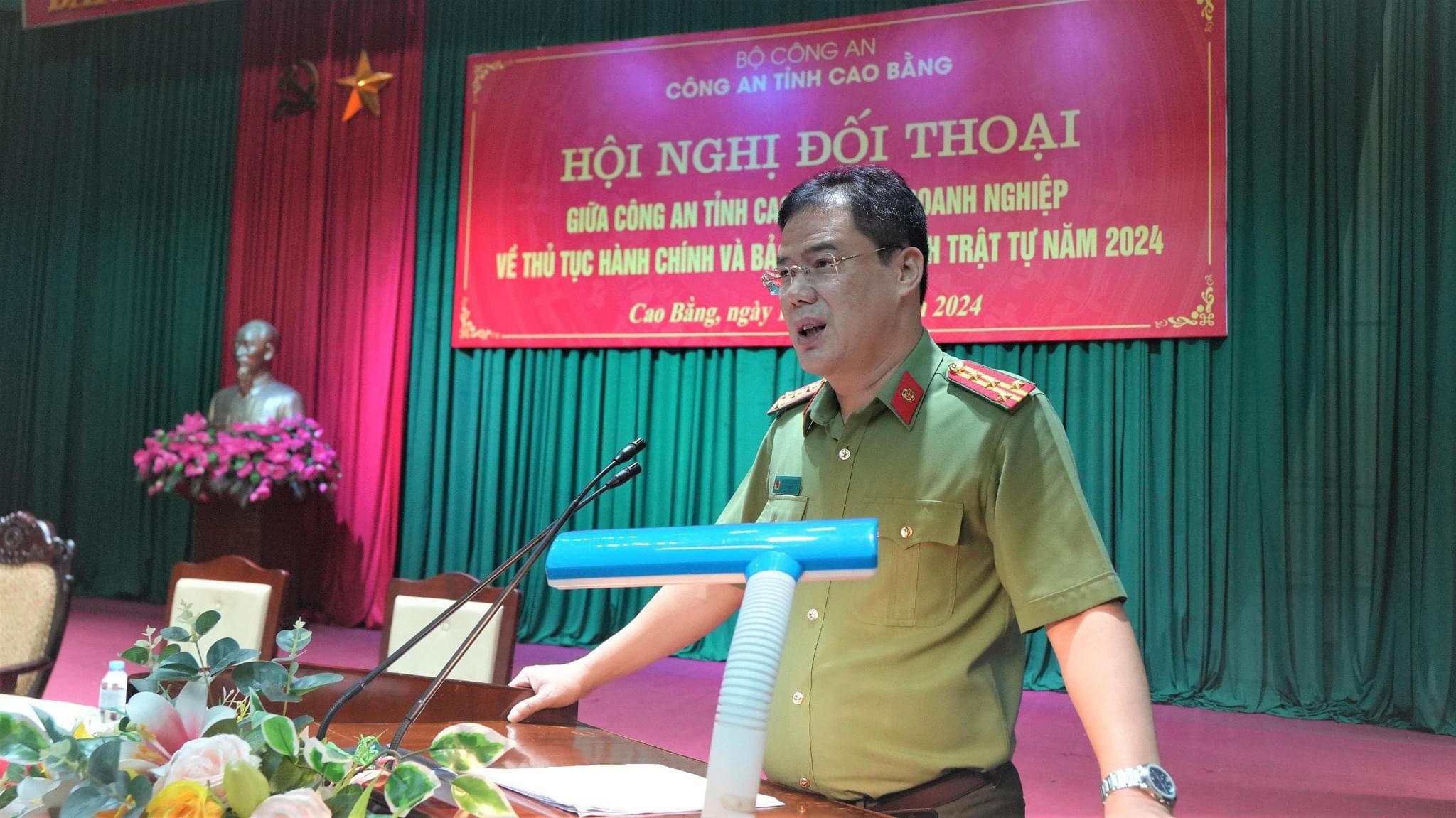 Phát biểu tại hội nghị, Đại tá Vũ Hồng Quang - Giám đốc Công an tỉnh Cao Bằng tiếp thu và giải đáp những thắc mắc của các doanh nghiệp. Trong thời gian tiếp theo, Giám đốc Công an tỉnh đề nghị lãnh đạo Công an các đơn vị, Công an thành phố tiếp tục chỉ đạo quyết liệt, đảm bảo thực hiện hoàn thành xuất sắc nhiệm vụ trên địa bàn. Tăng cường giáo dục cán bộ, chiến sĩ giữ đúng tư thế, lễ tiết tác phong, nâng cao ý thức trách nhiệm, kỷ luật, kỷ cương, thái độ trong thi hành nhiệm vụ.