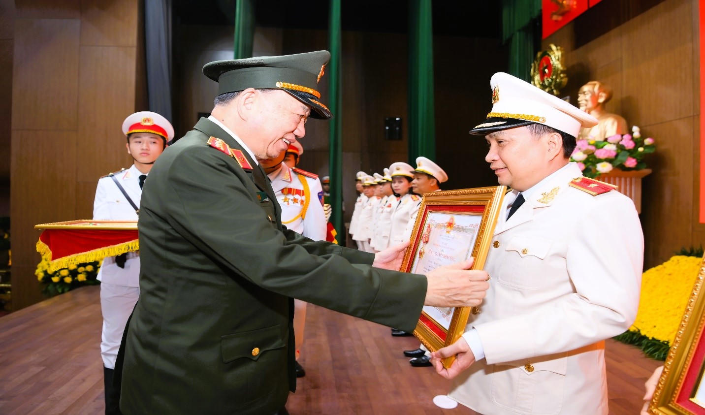 Dịp này, Thừa uỷ quyền của Chủ tịch nước, Đại tướng Tô Lâm - Uỷ viên Bộ Chính trị, Bộ trưởng Bộ Công an trao tặng Huân chương Chiến công hạng Nhất cho Thiếu tướng Nguyễn Sỹ Quang, Giám đốc Công an tỉnh Đồng Nai và Thiếu tướng Vũ Hồng Văn, Ủy viên UBKT Trung ương (nguyên Giám đốc Công an tỉnh Đồng Nai) đã lập chiến công đặc biệt xuất sắc trong chiến đấu và phục vụ chiến đấu, góp phần vào sự nghiệp xây dựng chủ nghĩa xã hội và bảo vệ Tổ quốc.