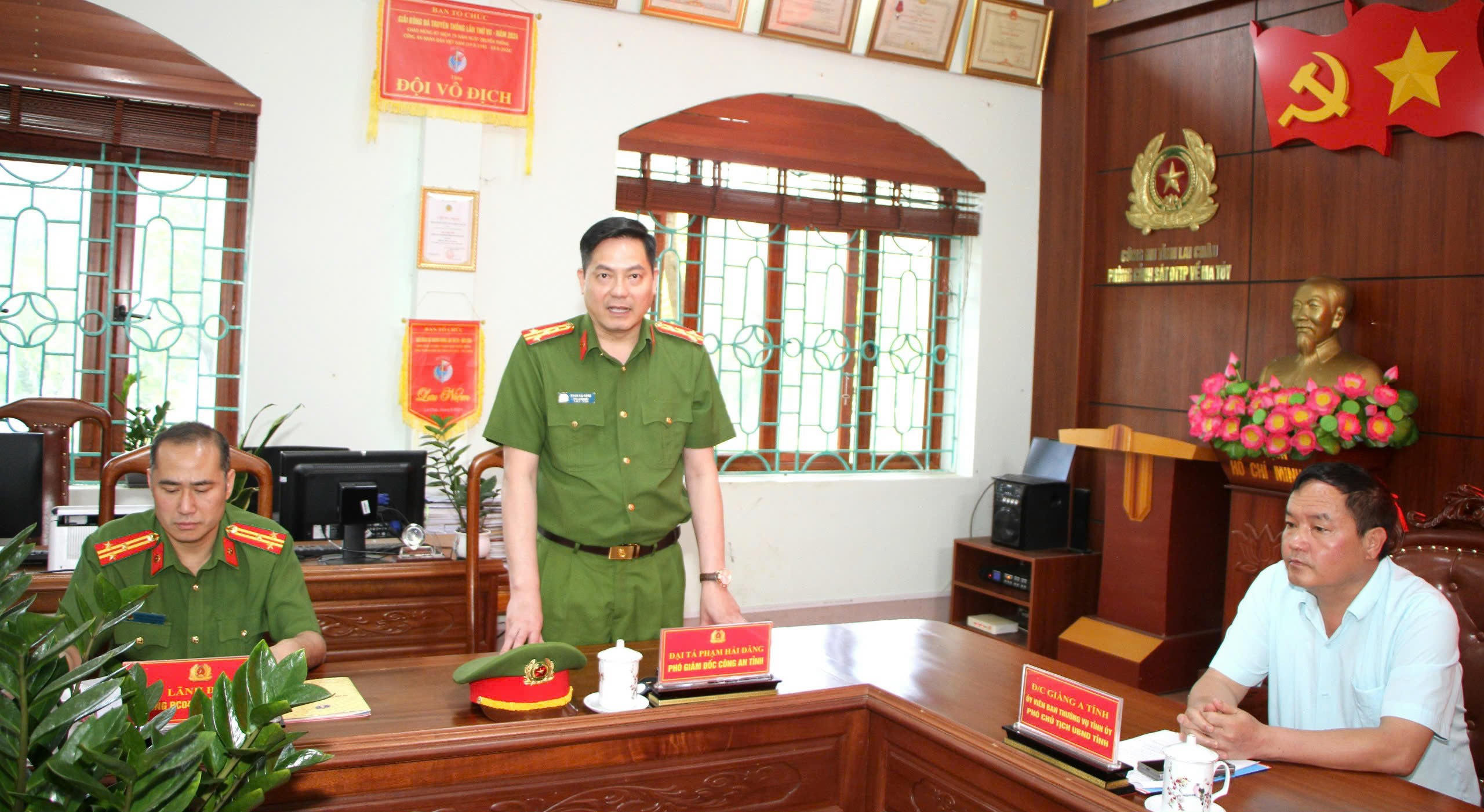 Dự lễ biểu dương có ông Giàng A Tính - Phó Chủ tịch UBND tỉnh Lai Châu, Đại tá Phạm Hải Đăng - Phó Giám đốc Công an tỉnh Lai Châu, đại diện lãnh đạo Văn phòng UBND tỉnh, Thường trực thi đua khối Cảnh sát điều tra, các phòng chức năng Công an tỉnh, lực lượng trực tiếp tham gia điều tra, khám phá chuyên án…