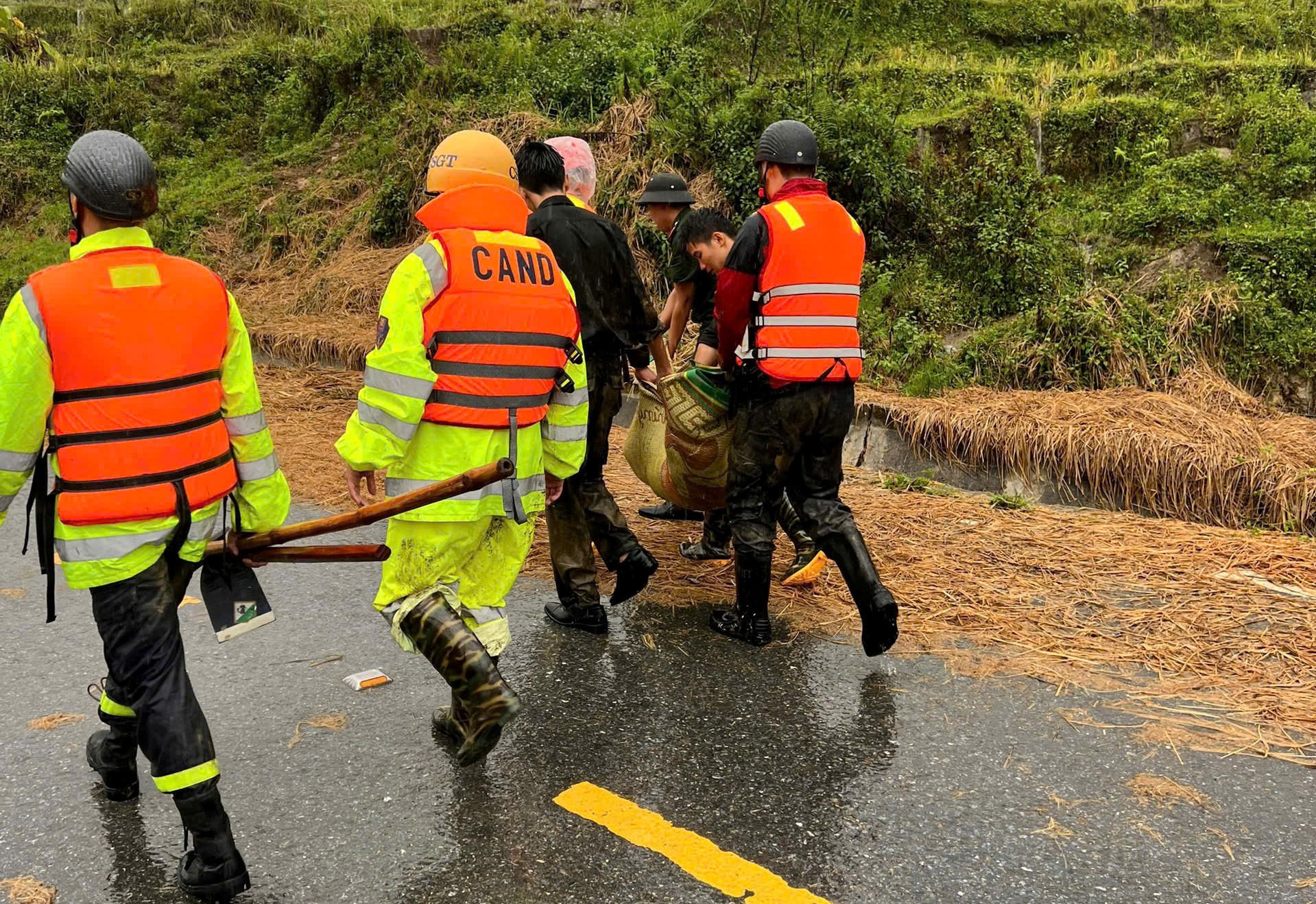 (PLVN) - Do ảnh hưởng của mưa bão trong những ngày qua, nhiều tuyến đường, khu vực trên địa bàn tỉnh Lào Cai bị ngập úng, sạt lở gây ách tắc giao thông, ảnh hưởng trực tiếp đến đời sống người dân. Những chiến sỹ công an, lực lượng chức năng đã đội mưa, vượt lũ hỗ trợ người dân di dời đến nơi an toàn, khắc phục hậu quả mưa bão.