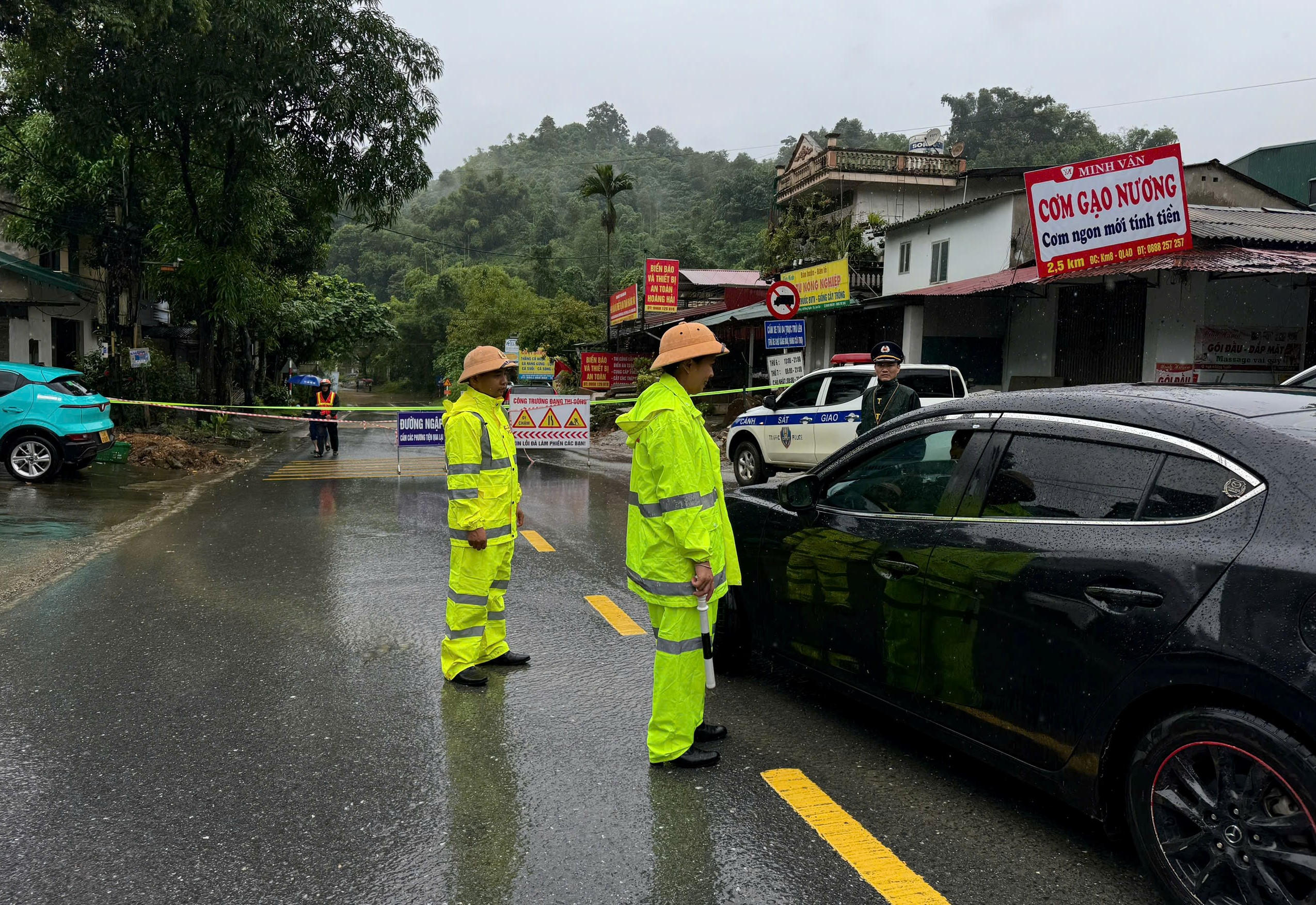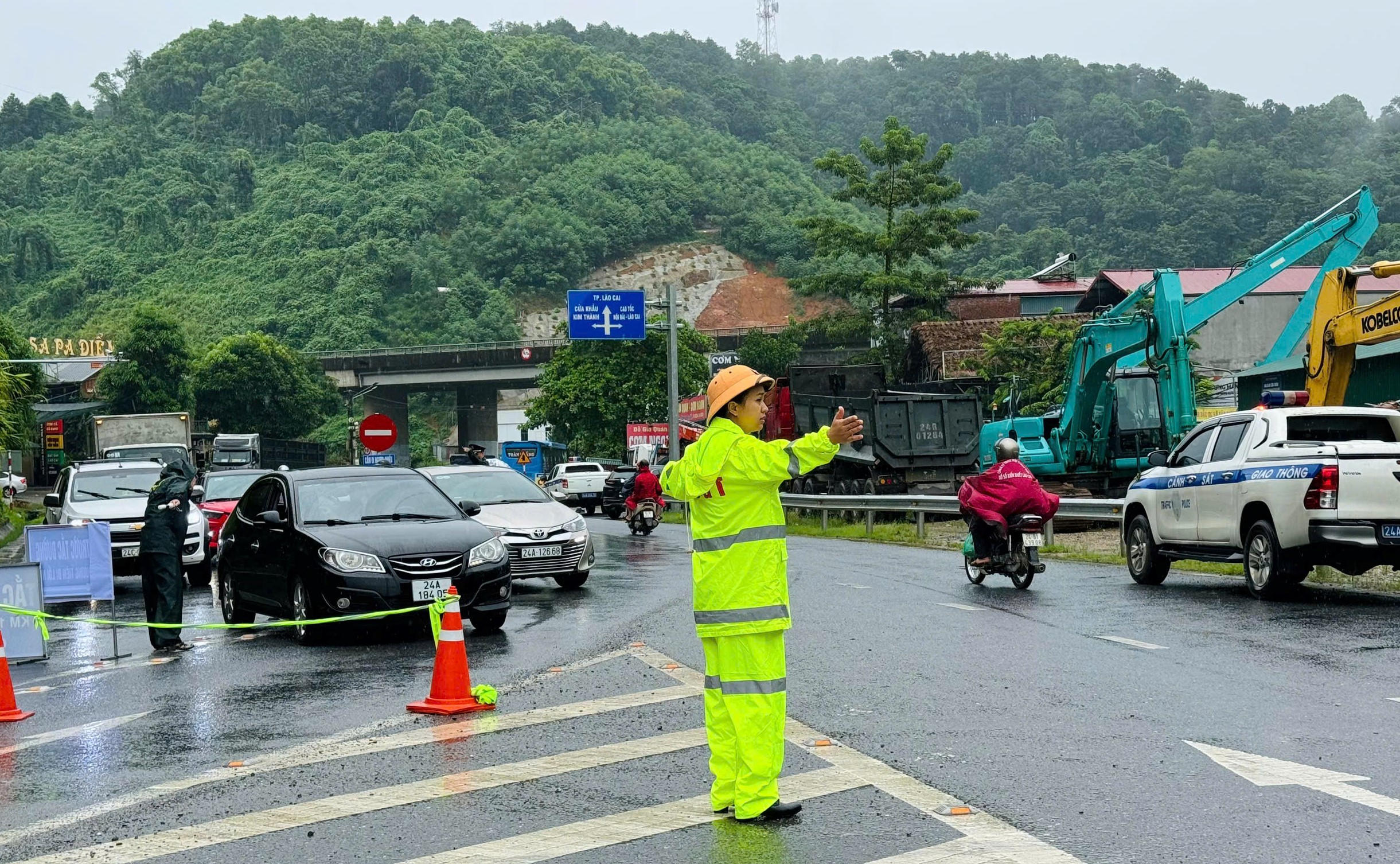 Công an TP Lào Cai phân luồng, điều tiết giao thông tại các điểm ngập úng