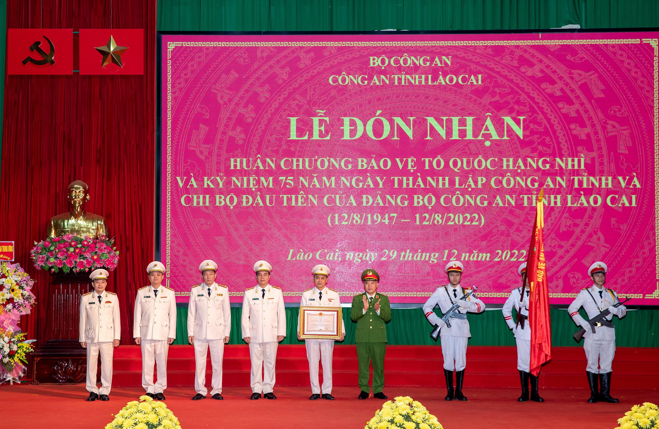 Tại buổi lễ, thừa ủy quyền của Chủ tịch nước, Thiếu tướng Nguyễn Văn Long, Thứ trưởng Bộ Công an đã trao Huân chương Bảo vệ Tổ quốc hạng Nhì cho Công an tỉnh Lào Cai.