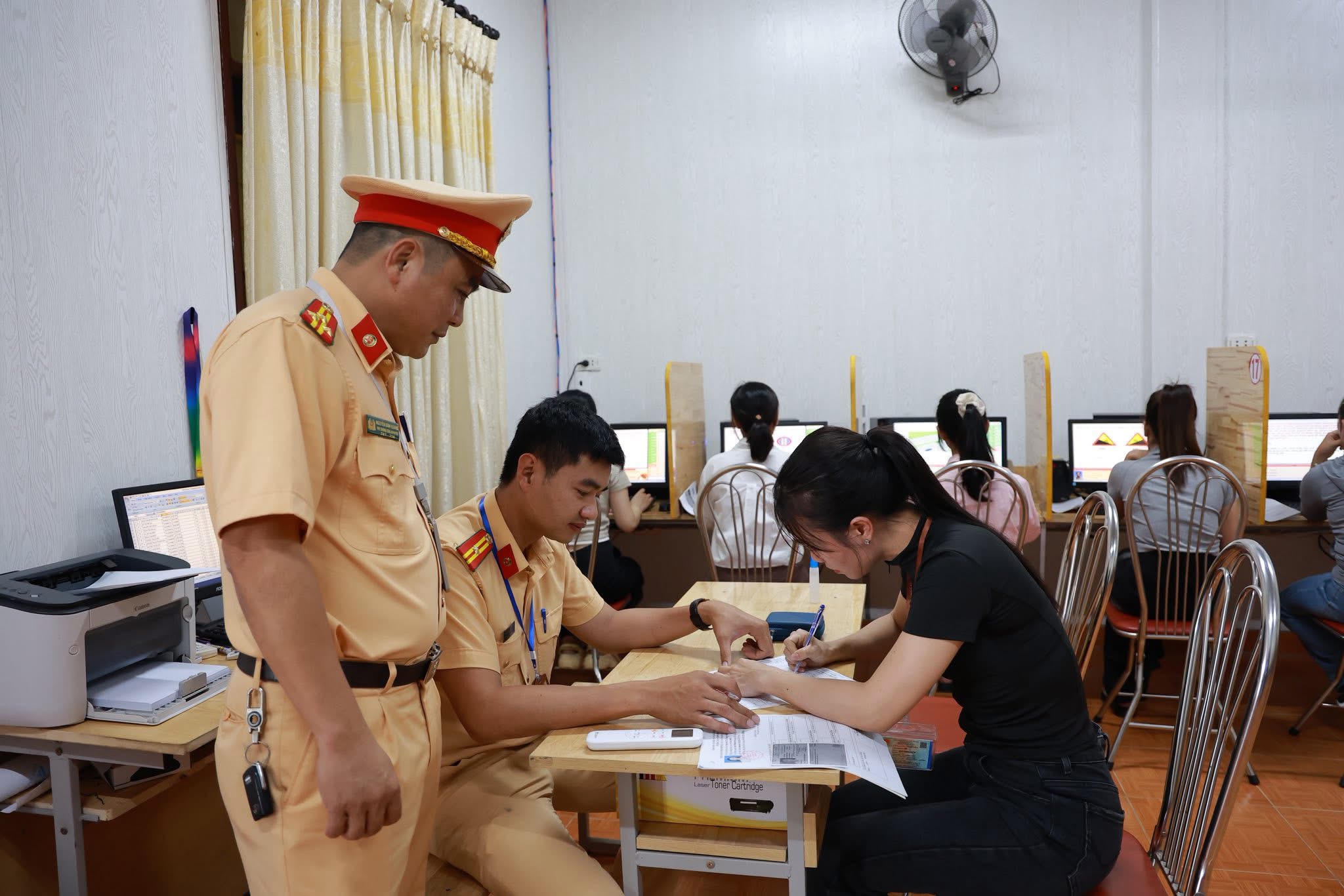 | Thí sinh làm thủ tục và sát hạch phần lý thuyết. |