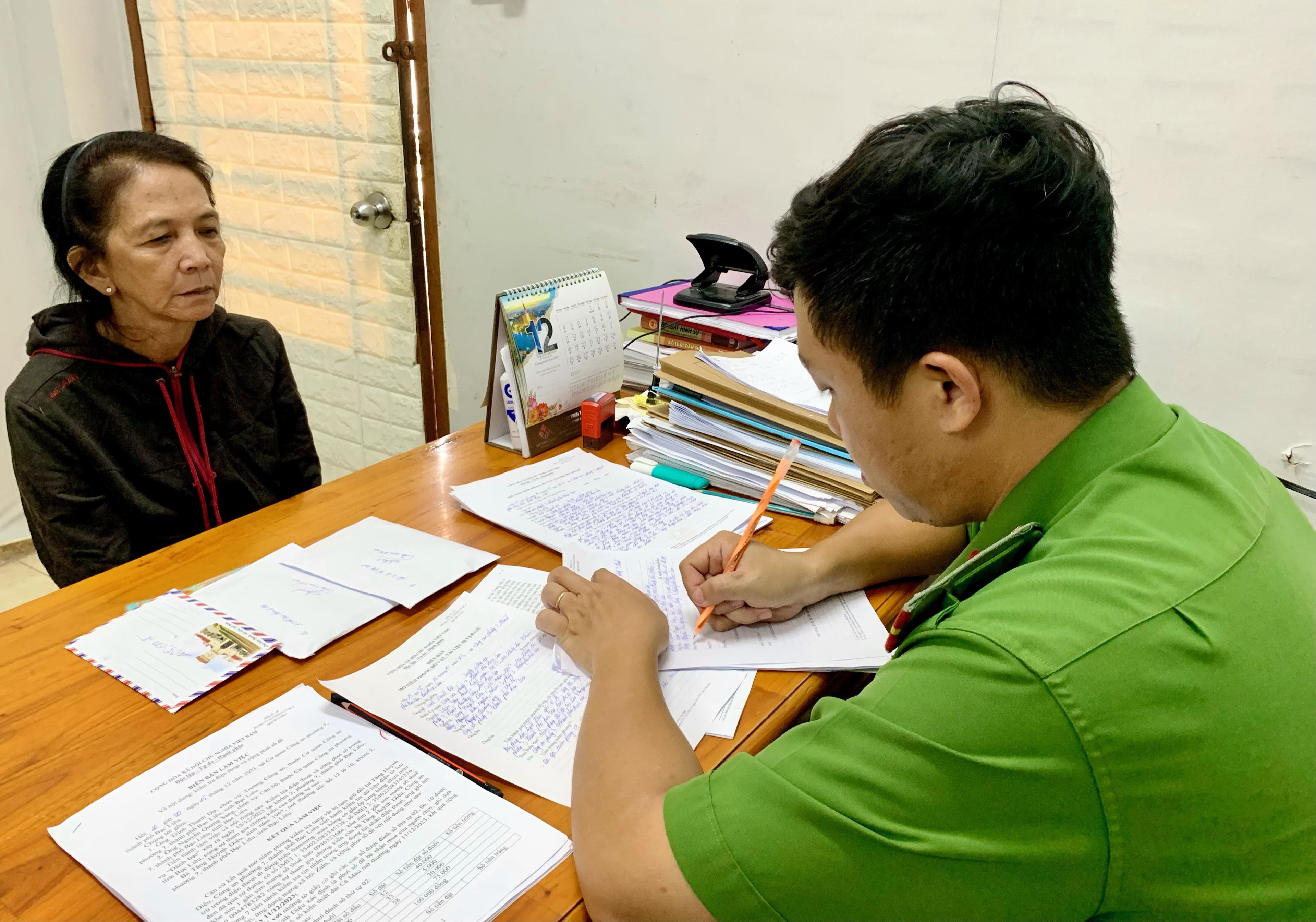Theo đó, vào khoảng 10 giờ ngày 16/12, qua công tác nắm tình hình, Công an xã Hiệp Thành (thành phố Bạc Liêu) bắt quả tang Trương Thị Tím (sinh năm 1965, ngụ ấp Giồng Nhãn A, xã Hiệp Thành, thành phố Bạc Liêu) đang thực hiện hành vi ghi số lô đề tại nhà. Đồng thời, lực lượng Công an tạm giữ 02 điện thoại di động, 03 tờ giấy ghi các con số phơi đề với tổng số tiền hơn 25 triệu đồng, 84 thẻ CCCD, 08 giấy phép lái xe, 04 giấy chứng nhận đăng ký xe và một số tang vật khác có liên quan.
