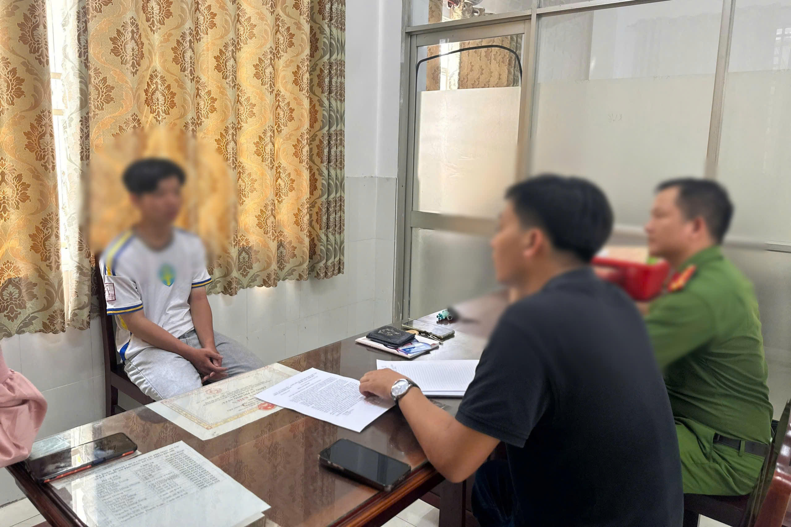 Nguyễn Hoàng M tại cơ quan chức năng. |