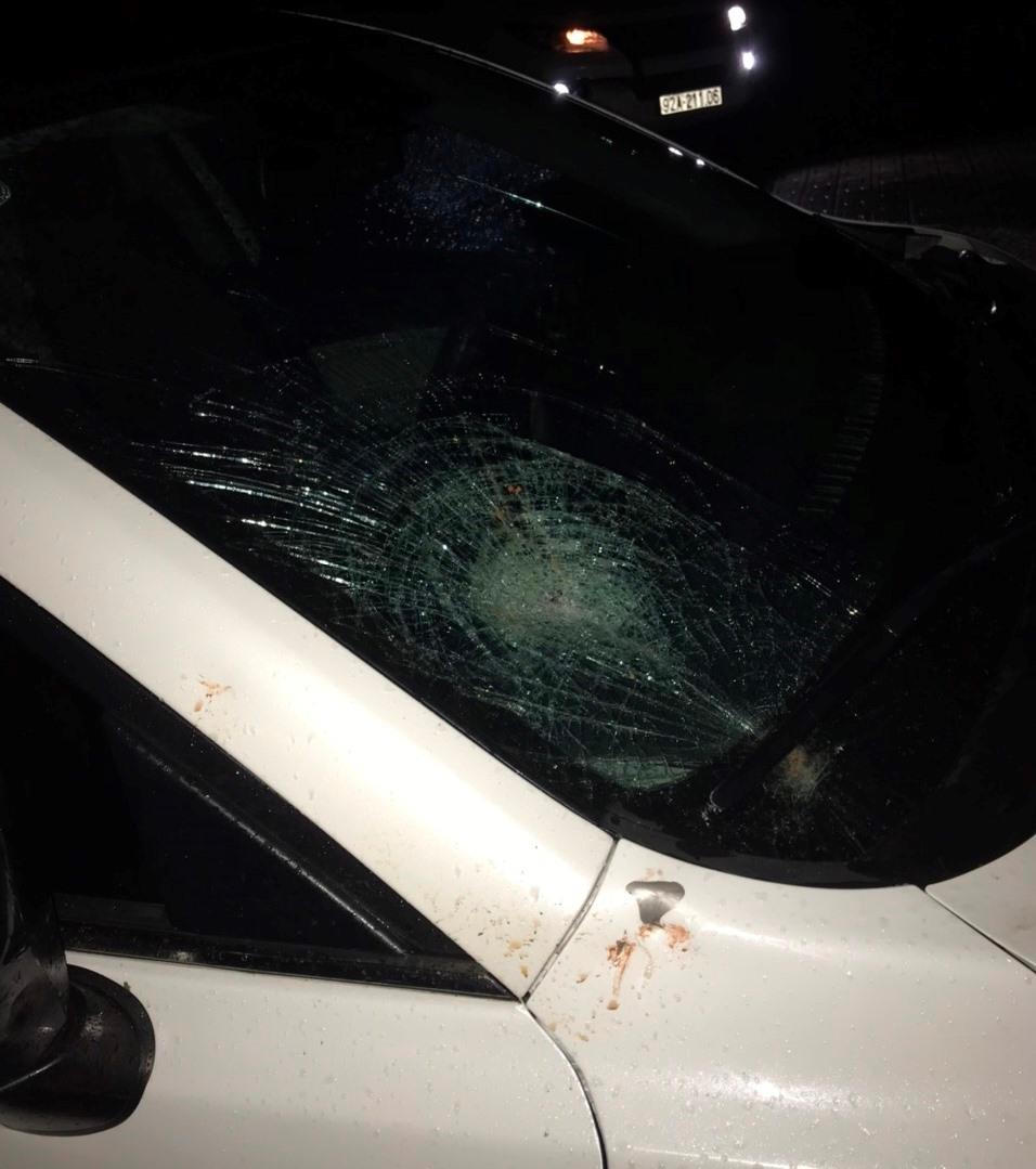 Chiếc xe ô-tô MAZDA 3 bị các đối tượng đập hư hỏng nhiều bộ phận. |