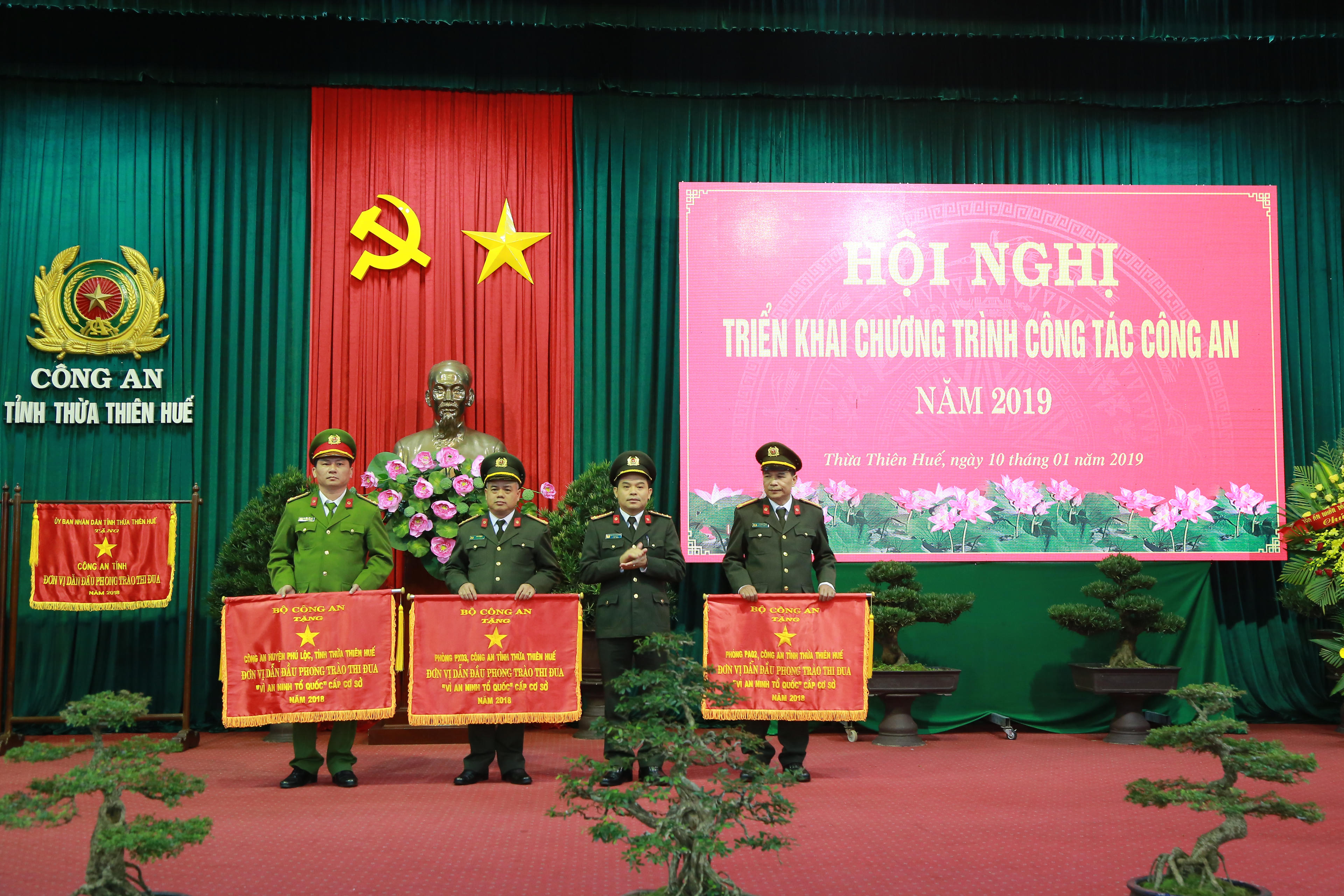 Ghi nhận thành tích xuất sắc trong các lĩnh vực công tác năm 2018, Công an tỉnh TT. Huế đã vinh dự được Bộ Công an tặng cờ đơn vị dẫn đầu phong trào thi đua “Vì an ninh Tổ quốc” cấp cơ sở, UBND tỉnh tặng cờ đơn vị xuất sắc trong phong trào thi đua “Vì an ninh Tổ quốc”.