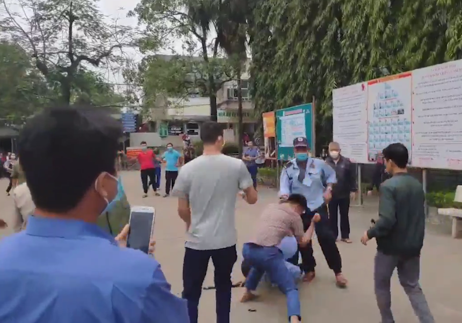 Khi đi vào Khoa Khám bệnh cả 3 người đều không đeo khẩu trang, thấy vậy bảo vệ của bệnh viện đã nhắc nhở nhưng 2 người nhà bệnh nhân không tuân thủ và có phản ứng gay gắt. Sau đó, người nhà bệnh nhân và bảo vệ đã xảy ra đánh lộn. Sự việc kéo dài khoảng 5 phút thì nhân viên y tế, những người chứng kiến đã can ngăn, đồng thời báo công an. Người bệnh ngay sau đó cũng được đưa vào khám bệnh.