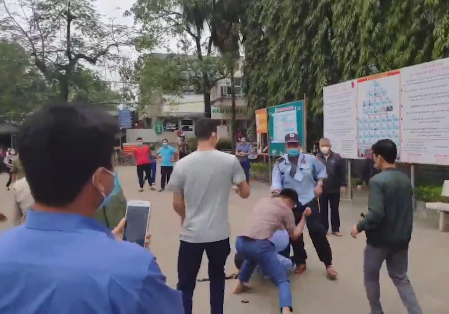 Trong đoạn video dài hơn 3 phút ghi lại cảnh 5 người mặc quần áo bảo vệ, đeo thẻ, tay cầm gậy cùng đuổi đánh một người đàn ông ngay trước của Khoa Khám bệnh. Người đàn ông này trong tay không hề cầm bất kỳ vũ khí nào. Trong đoạn video một người bảo vệ không ngừng miệng chửi lớn “Mẹ thằng chó này đánh chết mẹ nó đi”. Khi bị đánh người đàn ông này cũng dùng chân tay để đánh lại bảo vệ.