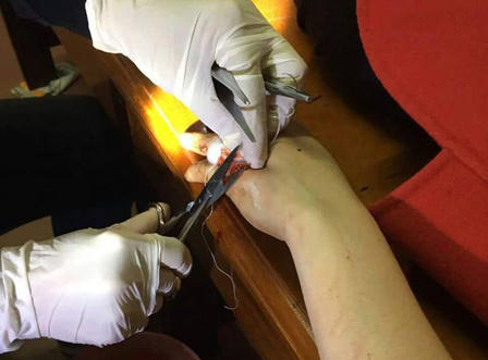 Tiếp đó, cả 4 người này cùng kéo chị Ngọc lôi lên một taxi màu xanh đậu sẵn bên ngoài.“Lúc vừa kéo lên xe, chị Thảo bất ngờ dùng kéo nhọn đâm vào mắt tôi. Còn chị Phương cầm dao chém liên tiếp vào tay tôi. Hai người đàn ông còn lại siết chặt cổ tôi để chị Thảo cắt tóc của tôi và tiếp tục dùng kéo đâm mạnh vào đầu tôi…” - chị Ngọc bức xúc cho biết.