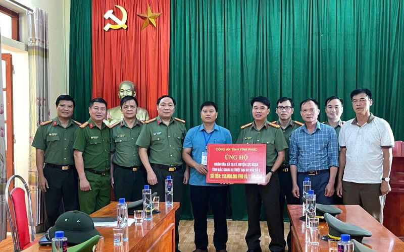 Tại các xã thuộc huyện Chiêm Hóa (tỉnh Tuyên Quang) và xã Sa Lý, huyện Lục Ngạn (tỉnh Bắc Giang), Đoàn công tác do Đại tá Lê Thanh Bình và Đại tá Nguyễn Văn Công - Phó Giám đốc Công an tỉnh Vĩnh Phúc dẫn đầu trực tiếp thăm hỏi, động viên và tặng quà giúp đỡ Nhân dân khắc phục hậu quả thiên tai với số tiền trao tặng tại tỉnh Tuyên Quang là 150 triệu đồng và 5 tấn gạo; xã Sa Lý, huyện Lục Ngạn, tỉnh Bắc Giang 150 triệu đồng và 1 tấn gạo.