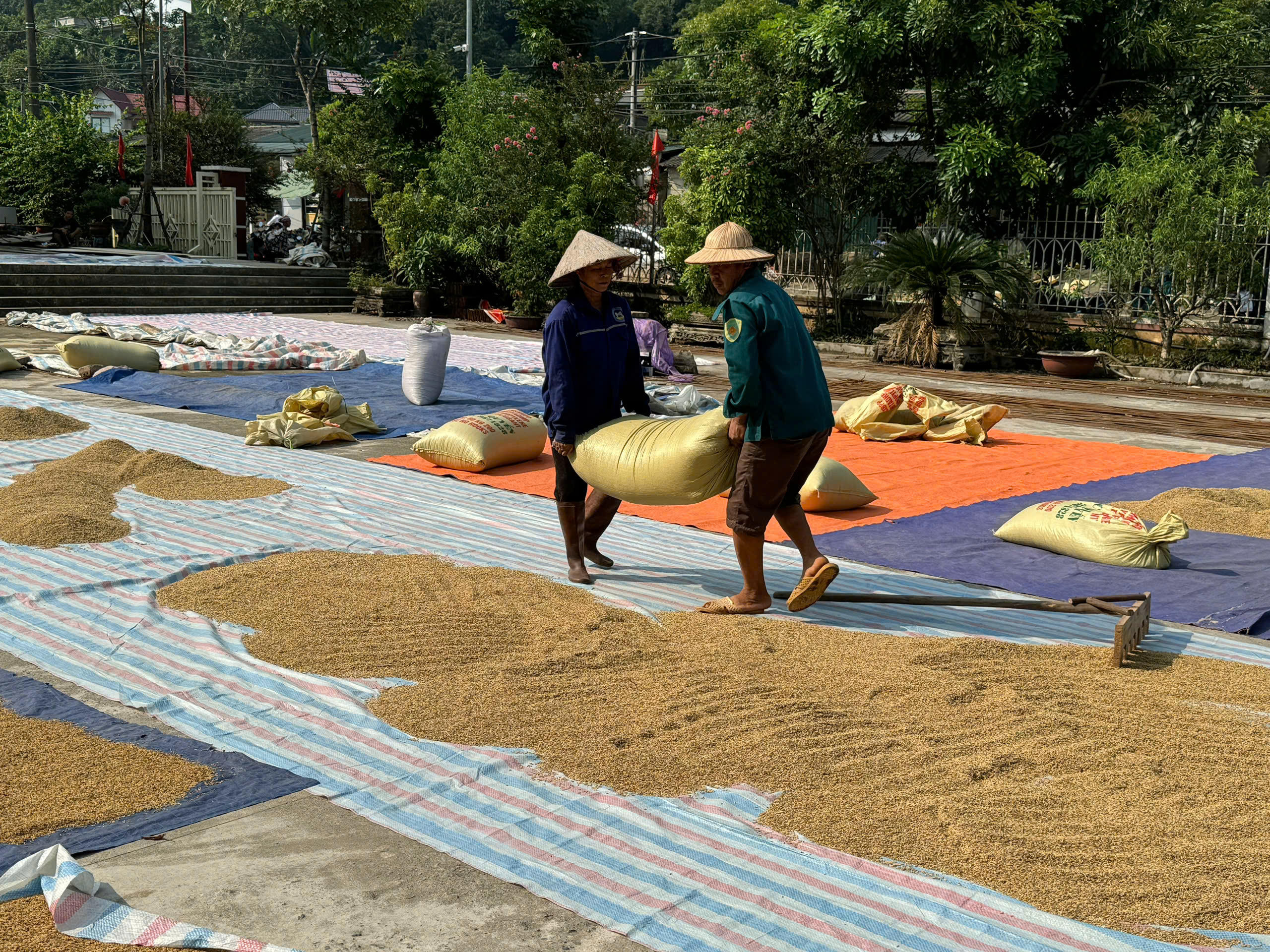 Những ngày nắng này, người nông dân tăng cường thu hoạch với số lượng lớn nên rất cần địa điểm để phơi.