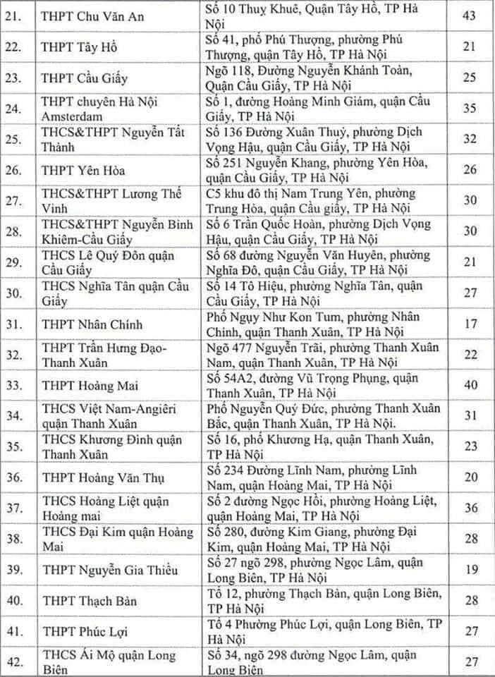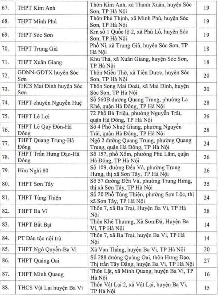 Theo thông tin từ Sở GD&ĐT Hà Nội, sẽ có 143 điểm thi tốt nghiệp THPT năm 2020. Trong đó, điểm Trường THPT Chu Văn An có nhiều phòng thi nhất: 43 phòng; điểm Trường THPT Hoàng Mai có 40 phòng; điểm thi Trường THPT chuyên Hà Nội- Amsterdam có 35 phòng.