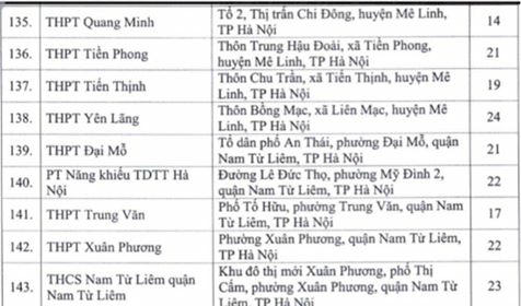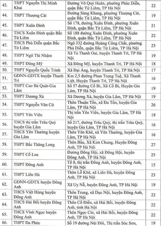 Hầu hết các điểm thi là các trường THPT tại các quận nội thành.