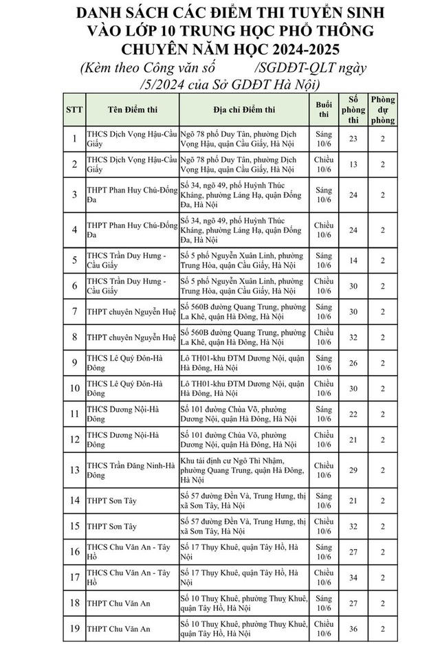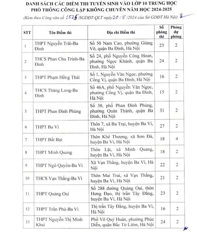 (PLVN) - Sở GD&ĐT Hà Nội mới công bố 220 địa điểm tổ chức kỳ thi tuyển sinh vào lớp 10 THPT năm học 2024-2025 trên địa bàn thành phố.