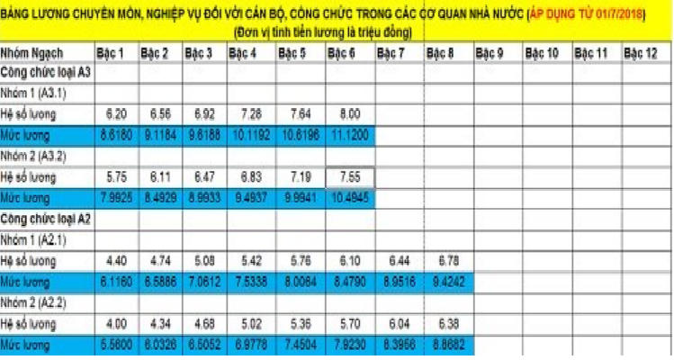 Cụ thể, đối chiếu tại bảng lương sau đây: