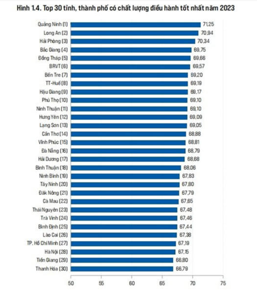 Một trong những điểm mới của Báo cáo PCI 2023 là thay vì xếp hạng cả 63 tỉnh, thành, báo cáo lần này chỉ xếp hạng Top 30. Theo ông Đậu Anh Tuấn, Trưởng ban Pháp chế - Phó Tổng Thư ký VCCI, cách thay đổi này là nhằm khuyến khích các địa phương tập trung nỗ lực bước vào nhóm dẫn đầu PCI hàng năm.