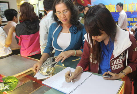 Tai triển lãm, sinh viên Nguyễn Văn Trúc, SV năm 2 trường cao đẳng cộng đồng Bình Thuận bày tỏ : “Cuộc triển lãm này giúp thế hệ sinh viên chúng em hiểu thêm được rất nhiều về các bằng chứng pháp lý rất cụ thể về chủ quyền hai quần đảo Hoàng Sa và Trường Sa.