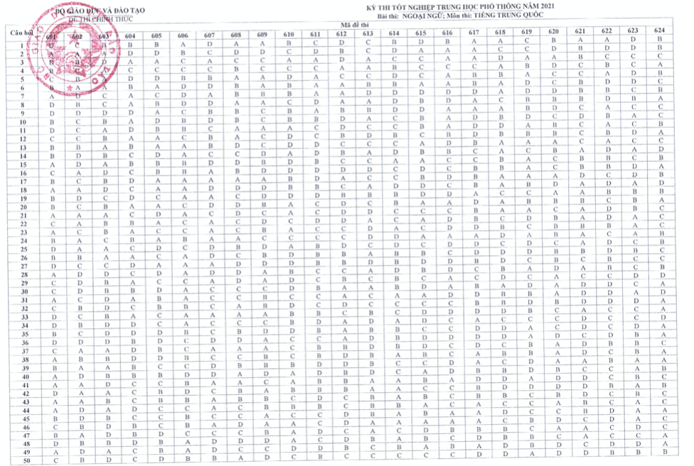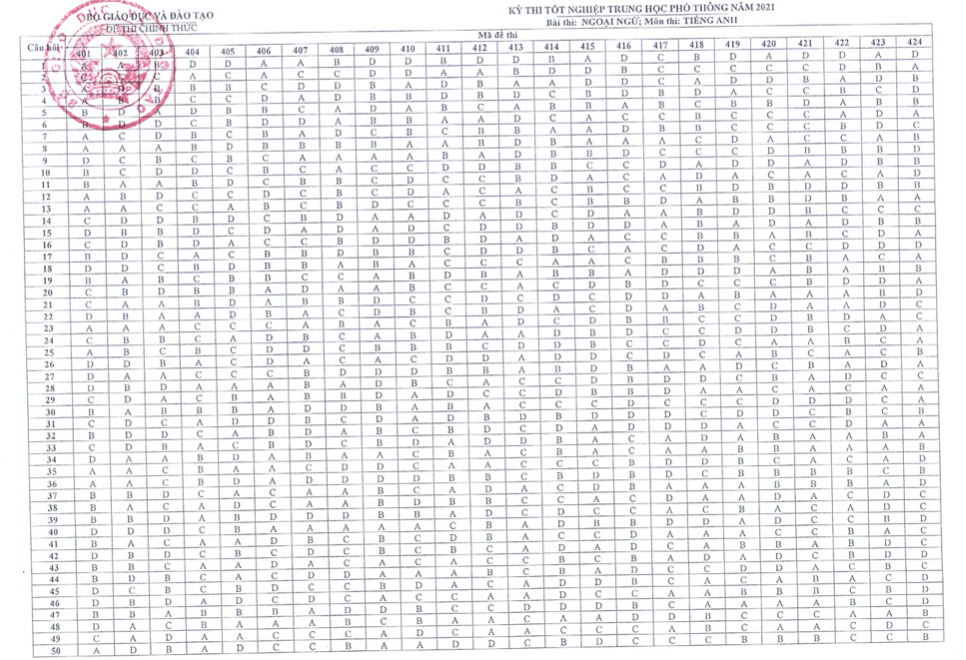 Công bố đáp án chính thức môn Ngoại ngữ tốt nghiệp THPT năm 2021