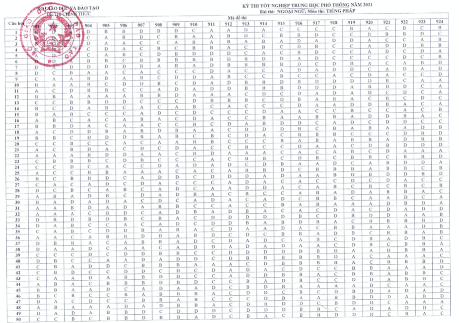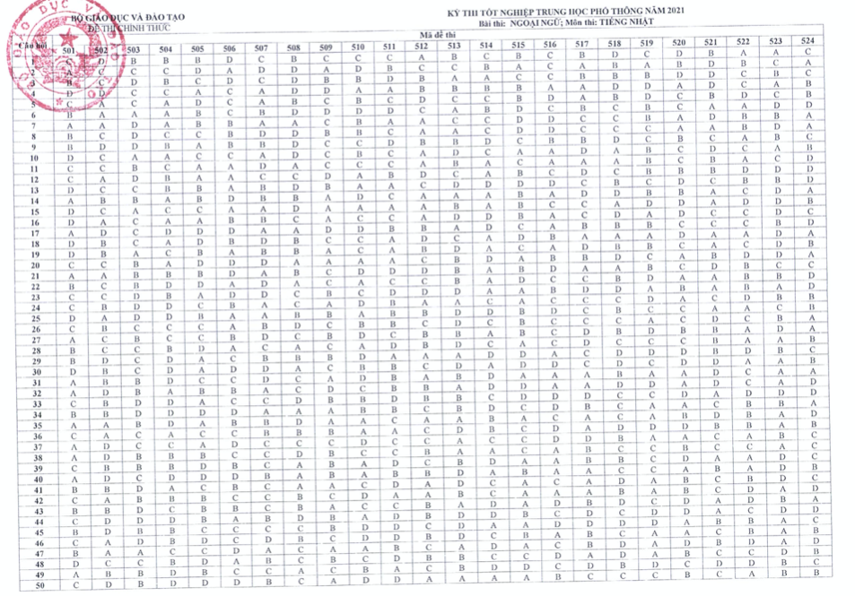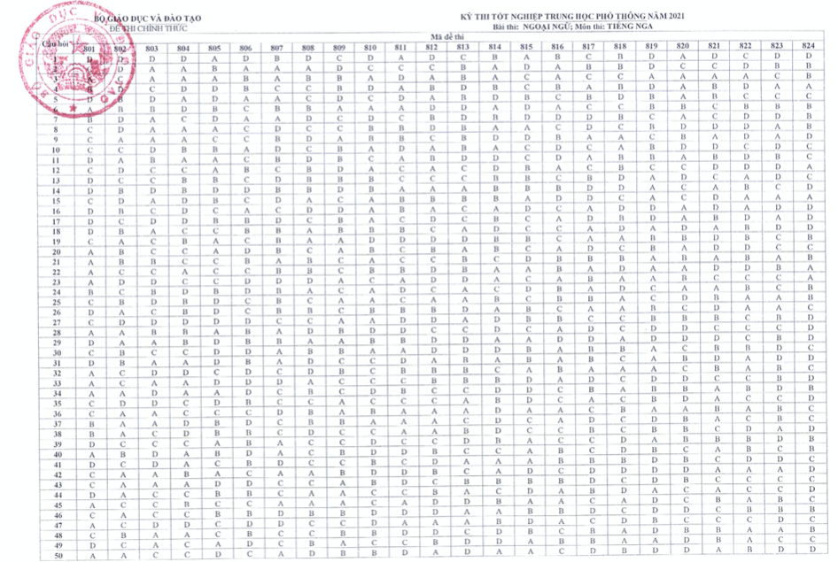 (PLVN) - Bộ GD&ĐT ngày 15/7 đã công bố đáp án các môn Ngoại ngữ trong kỳ thi tốt nghiệp THPT năm 2021 gồm Tiếng Anh, Tiếng Nga, Tiếng Pháp, Tiếng Trung Quốc, Tiếng Đức, Tiếng Hàn, Tiếng Nhật.