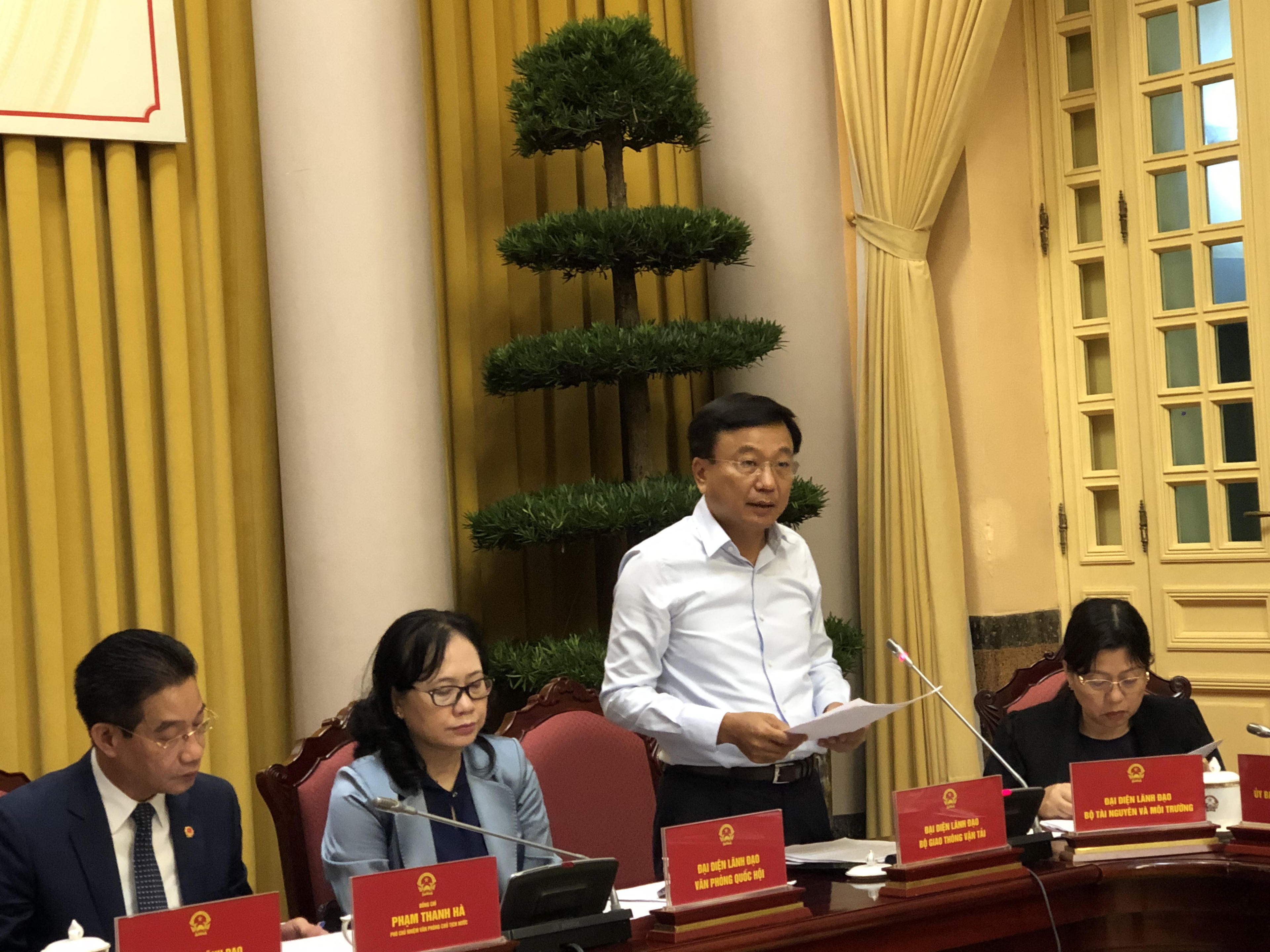 Trước báo giới, Phó Chủ nhiệm Văn phòng Chủ tịch nước Phạm Thanh Hà đã công bố Lệnh của Chủ tịch nước đối với 5 luật gồm: Luật Đường bộ; Luật sửa đổi, bổ sung một số điều của Luật Đấu giá tài sản; Luật Thủ đô; Luật Bảo hiểm xã hội; Luật sửa đổi, bổ sung một số điều của Luật Đất đai số 31/2024/QH15, Luật Nhà ở số 27/2023/QH15, Luật Kinh doanh bất động sản số 29/2023/QH15 và Luật Các tổ chức tín dụng số 32/2024/QH15.
