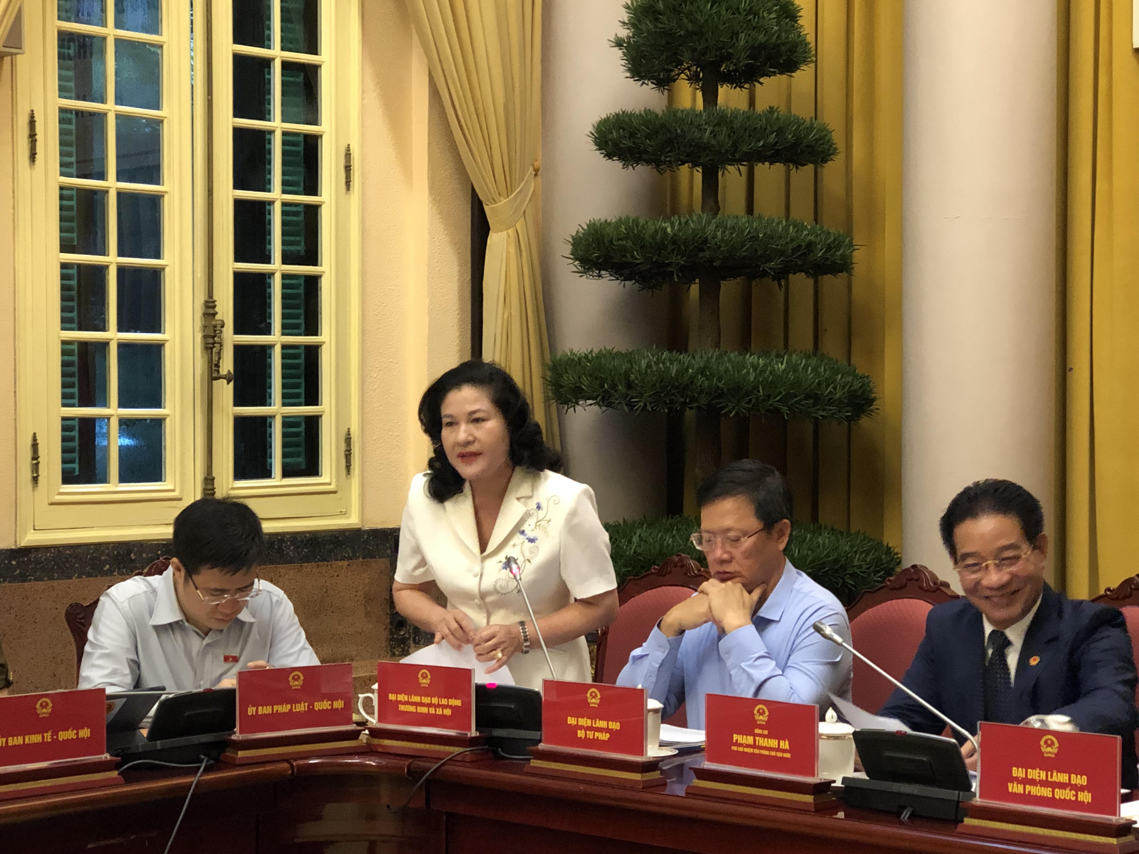Thứ trưởng Bộ Lao động, Thương binh và Xã hội Nguyễn Thị Hà giới thiệu về Luật Bảo hiểm xã hội. (Ảnh: PV) |