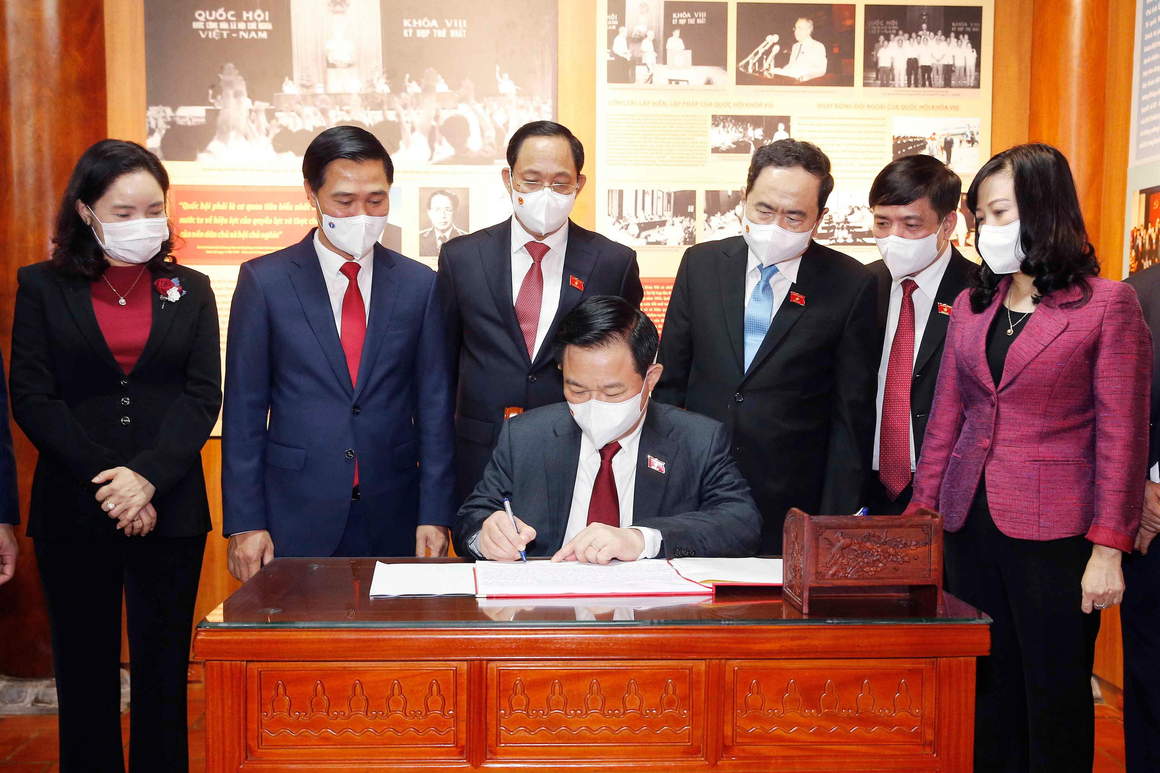 Chủ tịch Quốc hội viết sổ vàng tại Nhà lưu niệm nguyên Chủ tịch Quốc hội Lê Quang Đạo |
