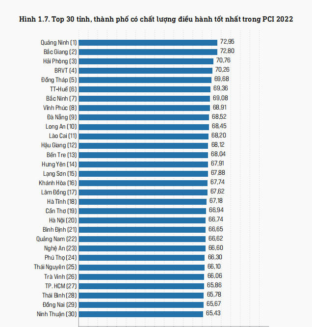 Năm nay báo cáo PCI chỉ trình bày 30 địa phương có điểm số PCI cao nhất |