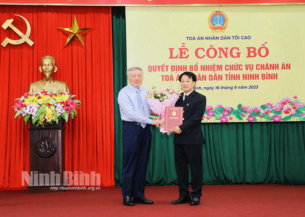 Công bố quyết định bổ nhiệm Chánh án Tòa án Nhân dân tỉnh Ninh Bình