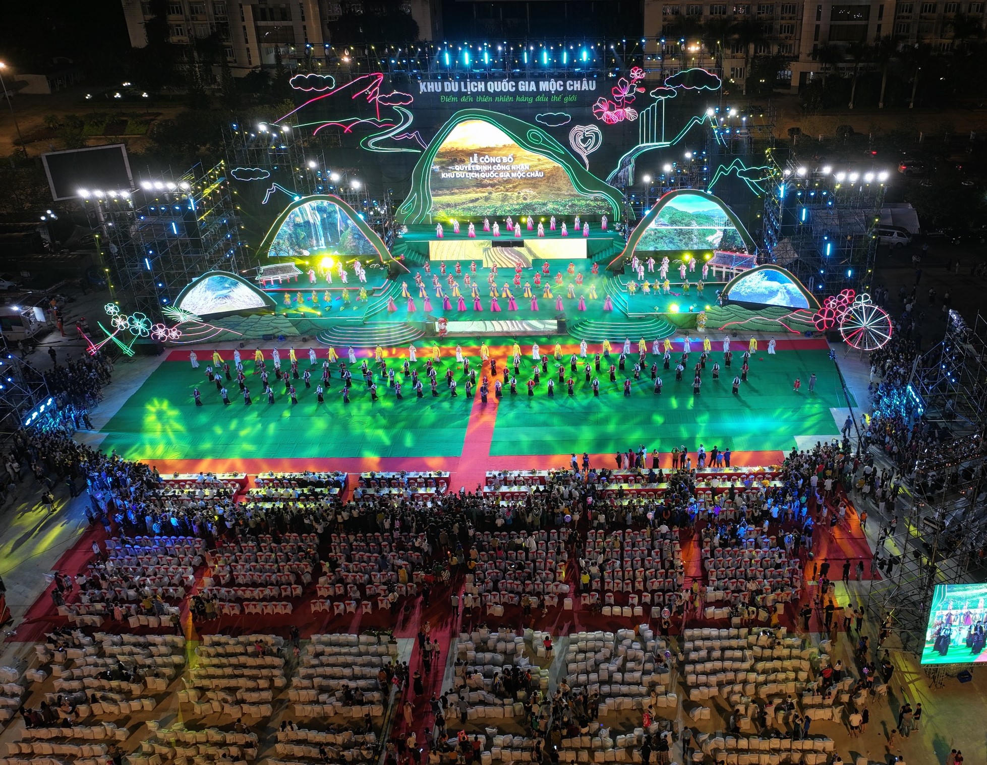(PLVN) - Tối 18/5, tại Quảng trường 8/5, Trung tâm hành chính huyện Mộc Châu, tỉnh Sơn La đã diễn ra Lễ công bố quyết định công nhận Khu du lịch quốc gia Mộc Châu.