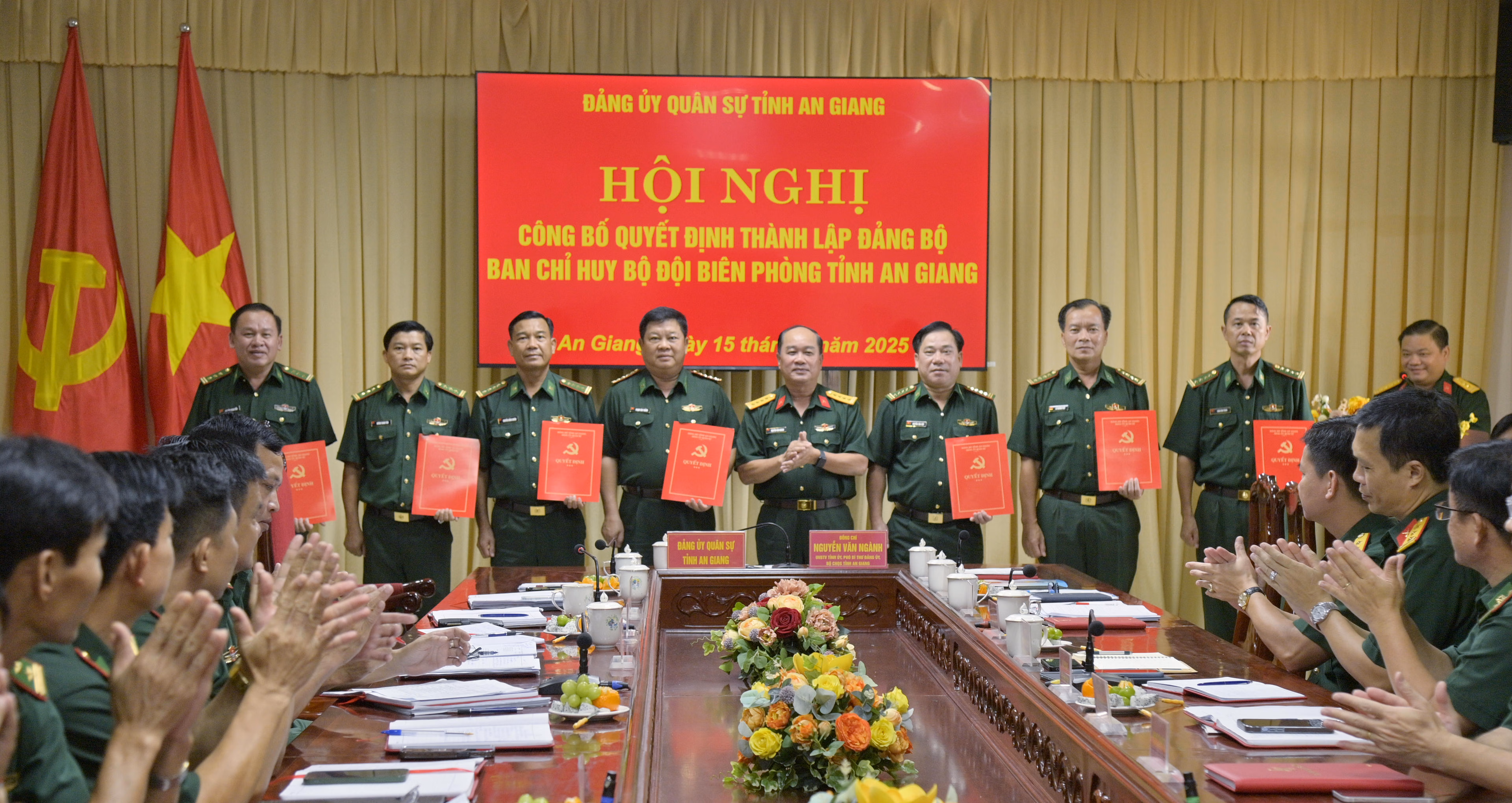 (PLVN) - Chiều ngày 15/7, Đảng ủy Quân sự tỉnh An Giang tổ chức hội nghị công bố quyết định thành lập Đảng bộ Ban Chỉ huy Bộ đội Biên phòng tỉnh An Giang.