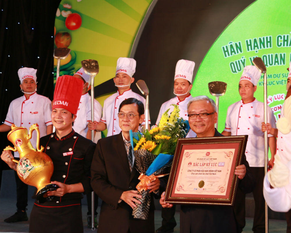 | Ông Dương Khôn Tường - Tổng Giám đốc Vedan Việt Nam (bên phải ngoài cùng) nhận chứng nhận từ Tổ chức Kỷ lục VN |