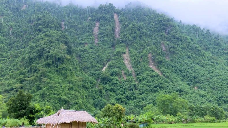 Hiện các khối đất, đá trên núi tiếp tục trượt, sạt, có nguy cơ gây nguy hiểm đến tính mạng và tài sản của 10 hộ dân với 42 nhân khẩu đang sinh sống tiếp giáp phía dưới chân núi.
